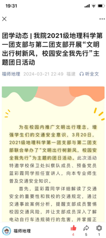 支部成员学习了“习近平论海洋强国”专题系列重要讲话、习近平总书记关于青年工作的重要思想,习近平总书记在同团中央新一届领导班子集体谈话时的重要讲话精神等内容,了解了国家发展的战略方向和未来发展蓝图;通过社区宣讲活动,增强了人们对于船政文化的了解,激发了民众的文化认同感,提升公众参与海洋强国建设的积极性。