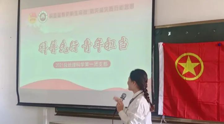 召开“科普先行,青年担当”团日活动,让师范生发挥引领作用,支部成员结合高中地理必修一第六章第三节《防灾减灾》的内容,为科普课堂的教学设计进行讨论完善;