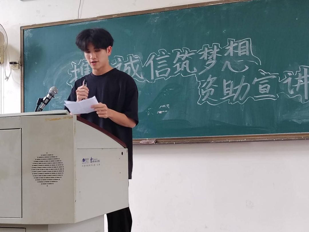 活动伊始,院学生会勤工部诚信宣讲团进行开场宣讲。宣讲团成员从诚信的定义出发,阐明诚信的内涵及意义。通过列举各教育阶段的相关资助政策,倡导学生树立新时代守信新风,争做新时代诚信青年。随后,励志先锋人物高刘欢进行经验分享,向与会学生讲述成长经历,分享学习经验,鼓舞大家守信用、懂感恩,不断提高自身综合素质,回报社会。