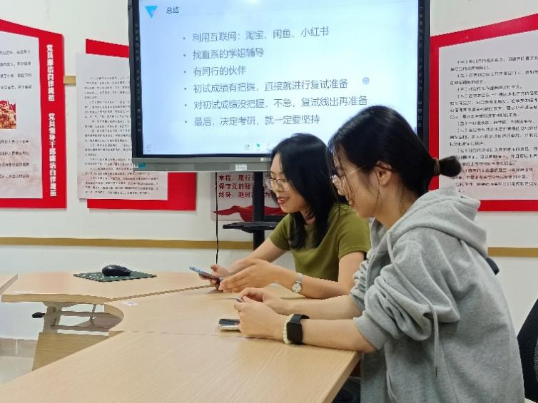 自然资源专业的黄靖仪同学表示:何辛榕学姐和严福琦学姐的分享让我对考研历程有了更加清晰的认识,学姐们就自身考研时间安排、考研心路历程、学习方法等各个方面进行了仔细生动地分享,耐心解答大家的疑惑,并强调大家要拥有坚持的决心。在分享会最后,还创建了考研信息分享群聊,让大家在后期也能够更好地学习交流。