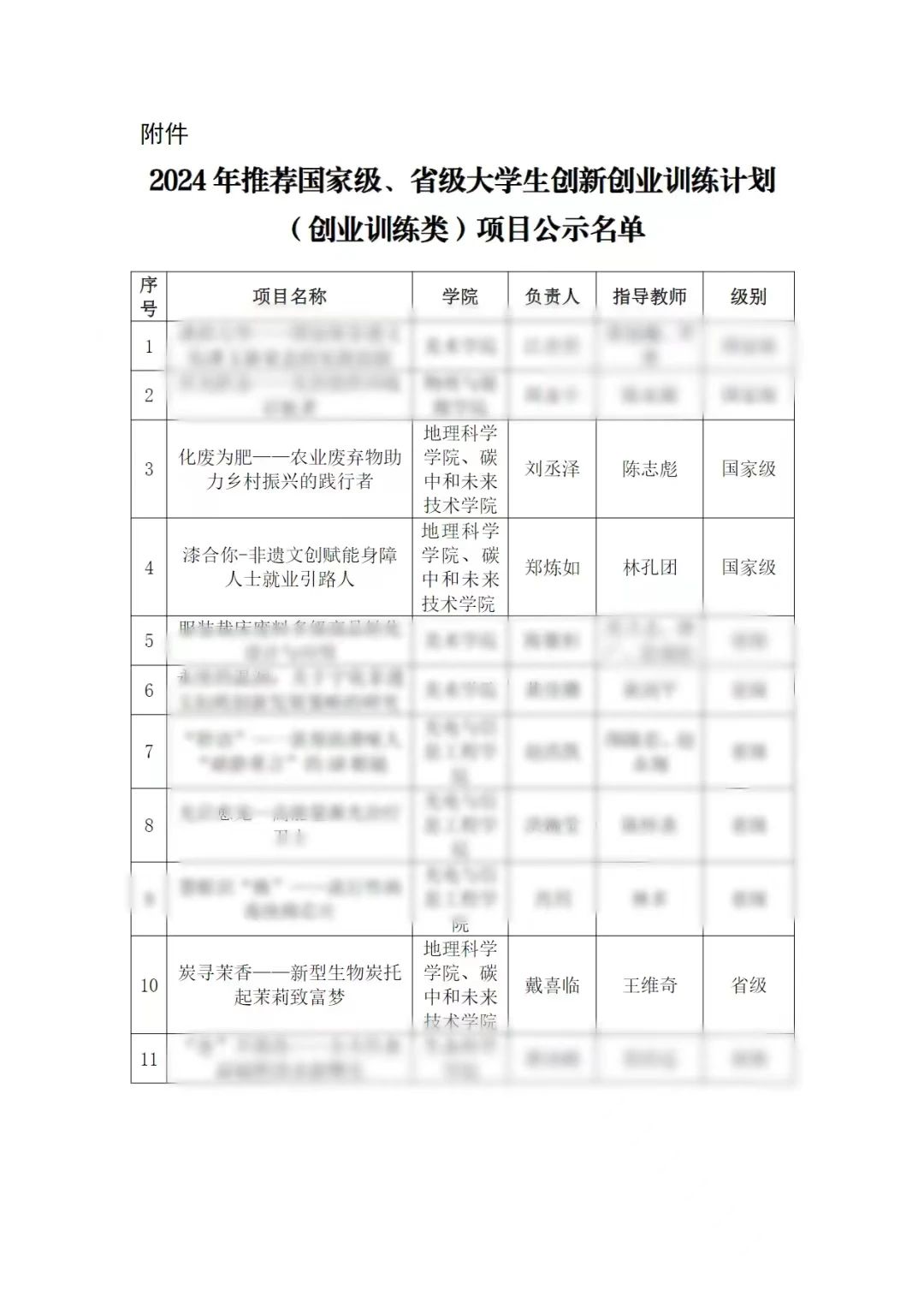 根据《关于开展2024年大学生创新创业训练计划(创业训练类)项目立项和结题的通知》(团师委〔2024〕11号)要求,经学生申报、学院推荐、专家评审,拟确定4项国家级、7项省级立项。我院项目《化废为肥——农业废弃物助力乡村振兴的践行者》《漆合你-非遗文创赋能身障人士就业引路人》获国家级立项,项目《炭寻茉香——新型生物炭托起茉莉致富梦》获省级立项。