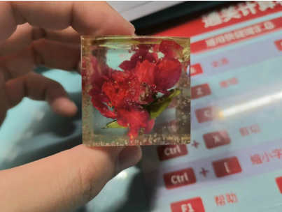采访结束后支部成员前往闽江口湿地公园采集植物花卉,并及时保存进自封袋中,马上排气密封,加入鲜花干燥剂进行去水处理,避免植物过早枯萎。等到回校后,支部成员以两人为一组制作滴胶压花作品,为湿地保护作宣传,并且拍摄制作过程的小视频以及H5动画上传至网上,对群众进行湿地植物种类的小科普。