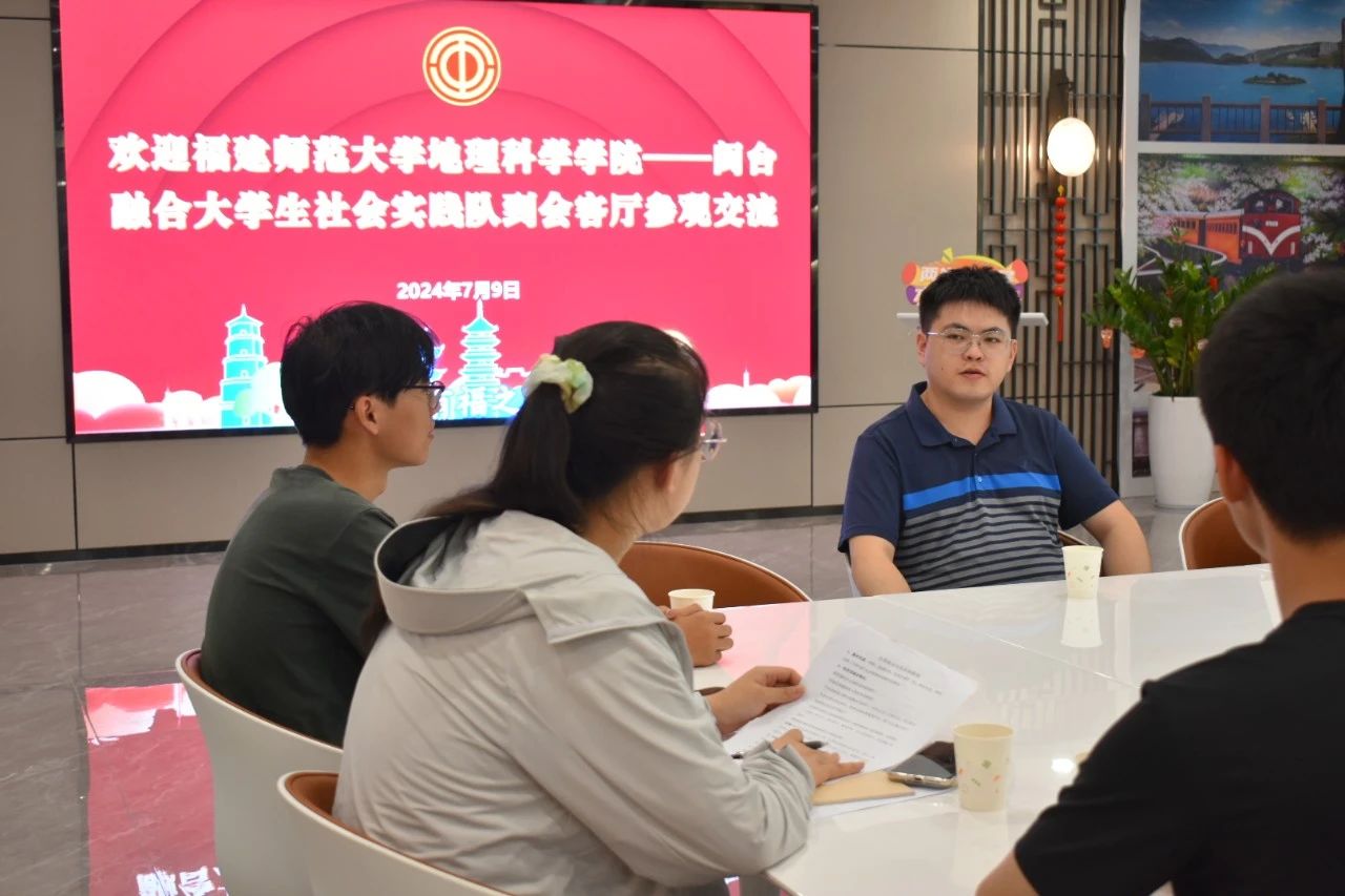 7月9日,我院“聚力融合”社会实践队前往福州市台江区两岸职工(福州)会客厅开展调研访谈,并同会客厅负责人林鸣女士和梁博翔先生就在榕台湾青年就业创业问题开展了深入的探讨交流。