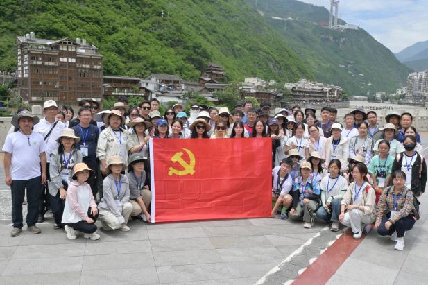 在大渡河边,实习师生就大渡河的水文条件、泸定桥的人文景观、大渡河干旱河谷的垂直地带性与特色产业开展了广泛的交流探讨,从而深刻认识当地“耕作带-果带-牧带-防护林带”的立体农业体系。在泸定桥头,实习队伍追寻当年红军长征的足迹,一同踏上了横跨百米大渡河的泸定桥。在磨西古镇,我院师生还进一步了解了磨西会议具体内容,体悟红色文化并探讨磨西台地的形成原因。