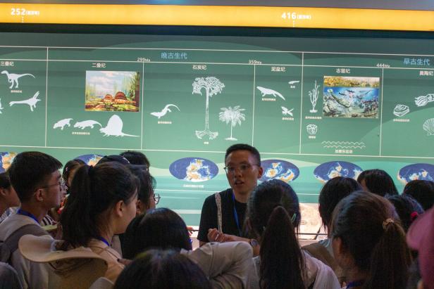 成都自然博物馆原是始建于1960年的成都理工大学博物馆,目前是我国西南地区建筑体量最大的自然博物馆,也是中国西部乃至全国享有较高知名度的、以地学类藏品为主的自然博物馆。该馆分为地质环境厅、矿产资源厅、龙行川渝厅、探秘恐龙厅、生命探索厅、缤纷生命厅等6个展厅。在杨前进、翁才银等老师介绍相关地质大背景之后,师生们开始逐一探索6个展厅的奇妙内容,并对展馆内存在一定学术争议的内容开展讨论,充分体现了思辨的学习过程和学习态度。