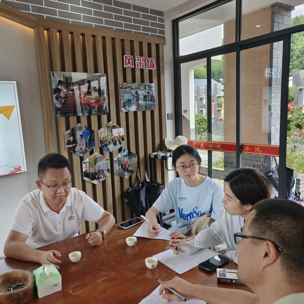 在村支书的带领下,实践队成员们还前往剪纸馆,了解到靴岭尾村通过建立“导师帮带”制,引进孔春霞、金素清等剪纸省、市级“非遗”传承人为帮带导师,共培育了剪纸县级“非遗”传承人7人、剪纸能手31人,为该村发展剪纸产业打造了一支带不走的剪纸人才队伍,成为文化振兴乡村的内生动力。