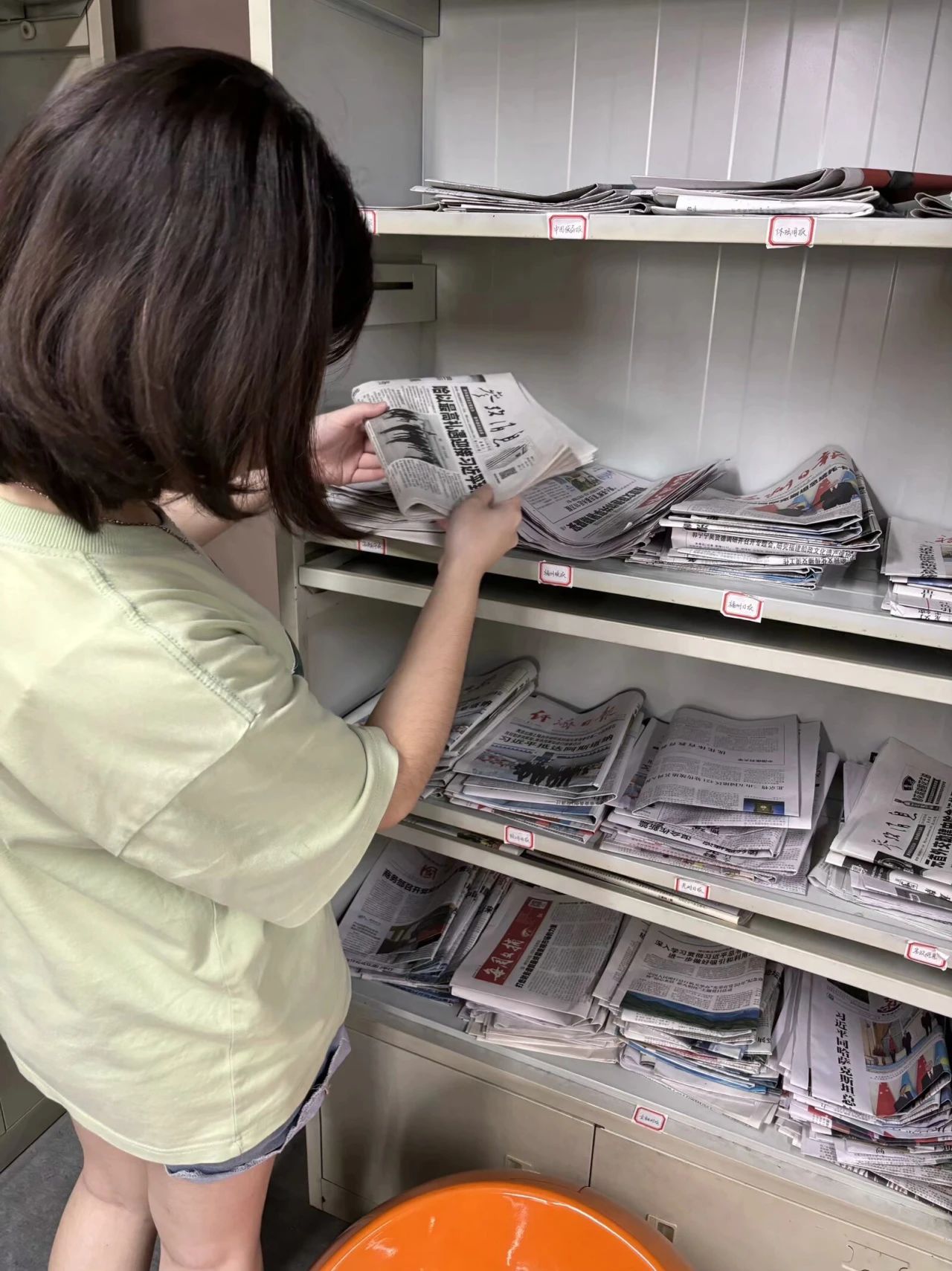 面对堆积如山的旧报纸和亟待上架的新报纸,志愿者细心地将每一份旧报纸整理打包,迅速准确地将新报纸分类上架,确保读者能够及时获取到最新的资讯。志愿者们以实际行动诠释了“奉献、友爱、互助、进步”的志愿服务精神,为营造更加温馨、有序的阅读环境贡献了自己的青春力量。