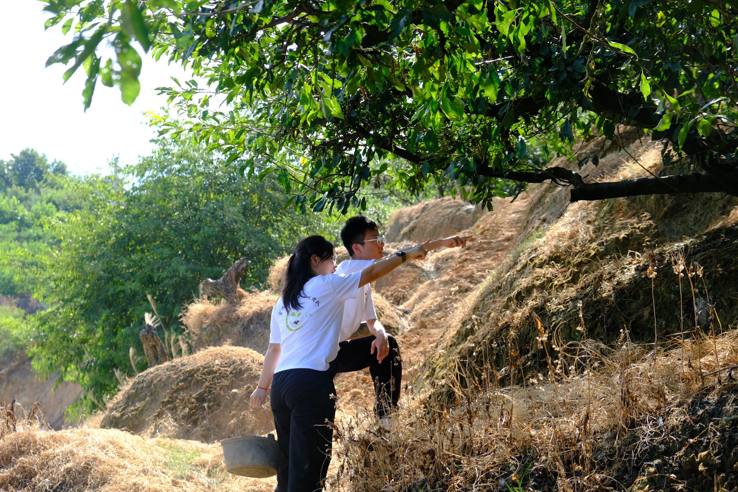 产业园生产的有机肥将售卖给周边的果农,团队遇到了一位周边种植油奈的农户,队员们热情地与农户交流起来。在了解农户对于自家农田肥力方面的问题后,队员们向农户展示了实践团队参与研发的具有高保水性物质的菌剂,向农户清楚地介绍菌剂的成分、作用原理、使用方法。农户紧紧握着手中的菌剂,激动的说道:“我就想着再多学些新技术,让日子过得更红火。也希望你们这些年轻人多给我们出出新主意、帮帮忙。”