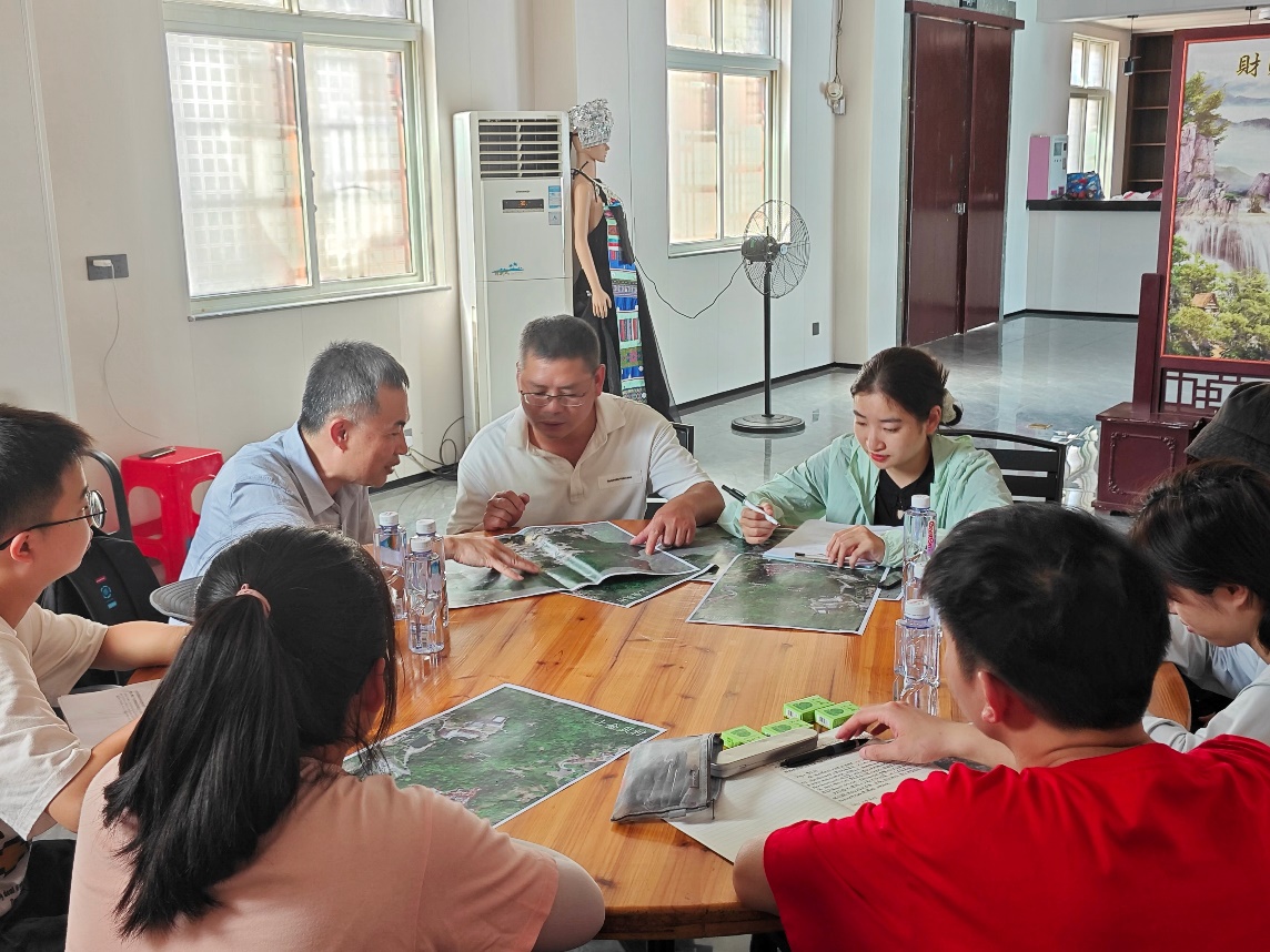 7月16日,调研团队在具有海上畲乡之称的雷东村与村支部书记访谈。期间,团队结合专业背景,利用村庄遥感影像图,就雷东村用地用海分类与村支部书记展开热烈的讨论,并一致认为:雷东村与传统以“山哈”著称的畲族村落不同,其作为沿海畲族村的代表,乡村振兴务必保留住“沿海”这一特色名片,走出一条与众不同的振兴之路。
