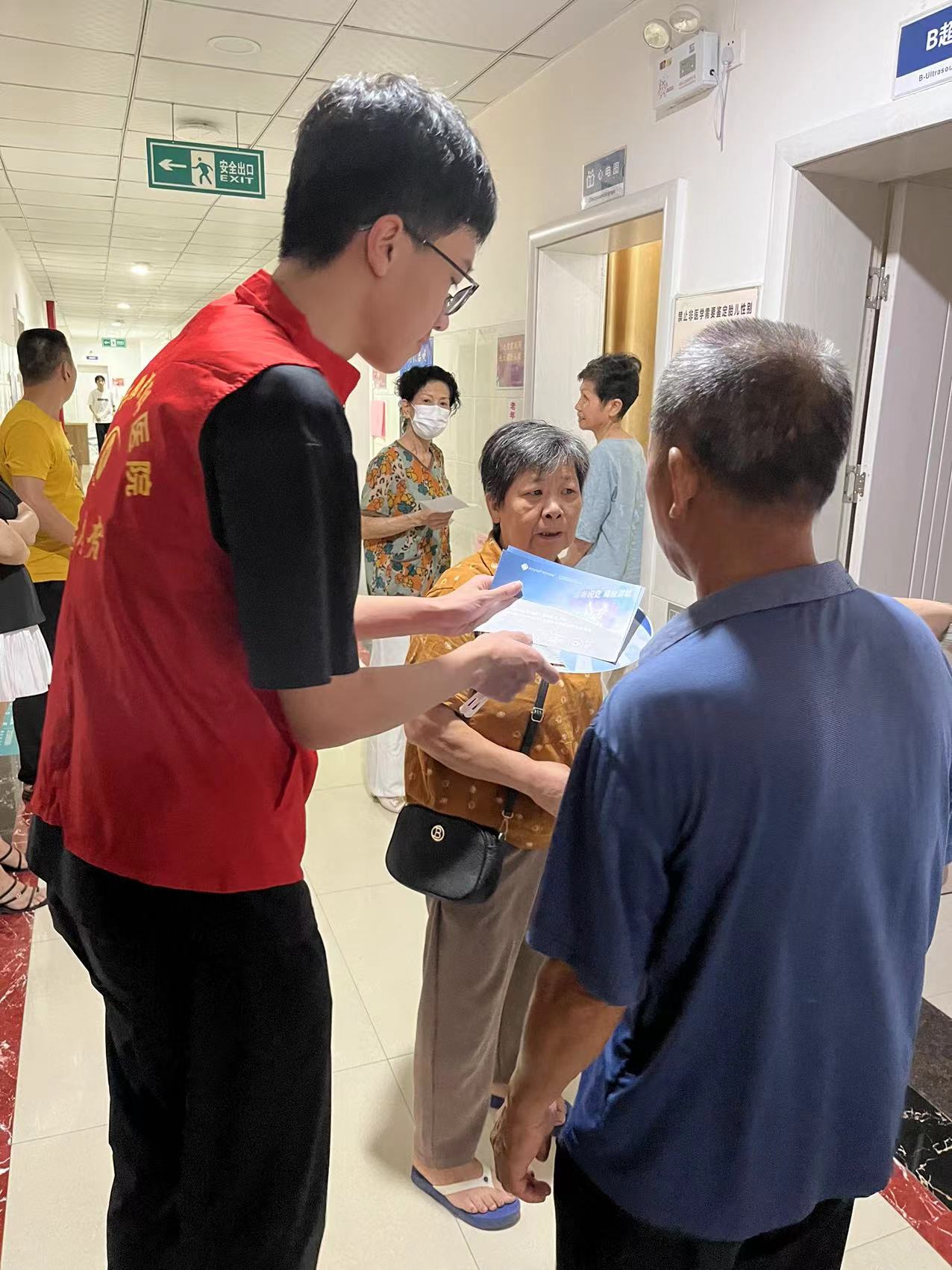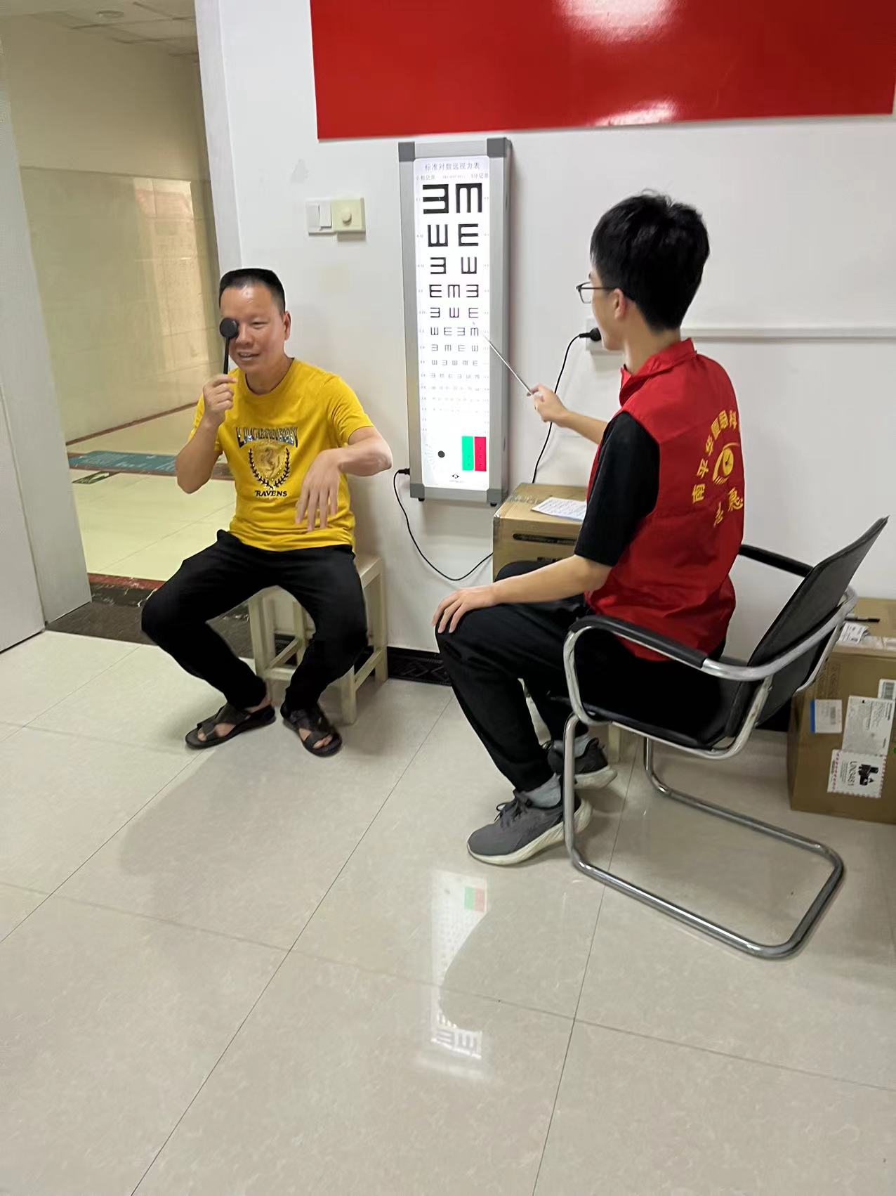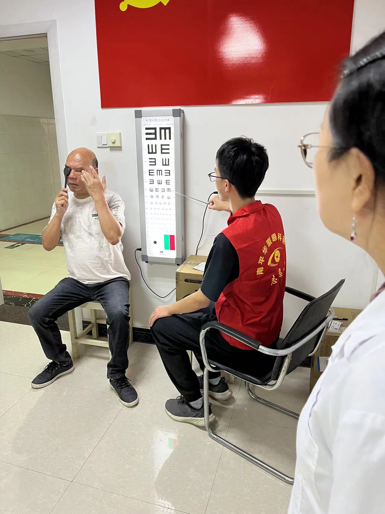 在与黄墩卫生所做好对接准备后,志愿服务队伍投入了在黄墩卫生所的第一服务活动:为社区居民免费进行视力测量。当天前往卫生所测量视力的居民络绎不绝,仅一个早上志愿者们便为20多位居民进行了免费视力测量服务。为致力于让更多居民都能了解、接受卫生所的公益服务,志愿者们还积极配合卫生所开展白内障公益治疗活动,向周边社区居民派发公益传单。