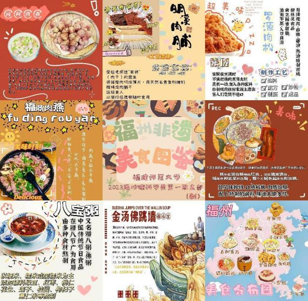 主题学习会:为提高支部成员对福州非遗美食的理论知识了解,深入了解非遗文化的魅力,该支部先后开展了“品味民间美味,感受非遗魅力”主题班会以及《论党的青年工作》读书交流会,以图片与文字相结合的方式为大家介绍福州各式非遗美食的不同文化背景,支部成员以此为知识基础,最终制作出福州非遗美食图鉴。