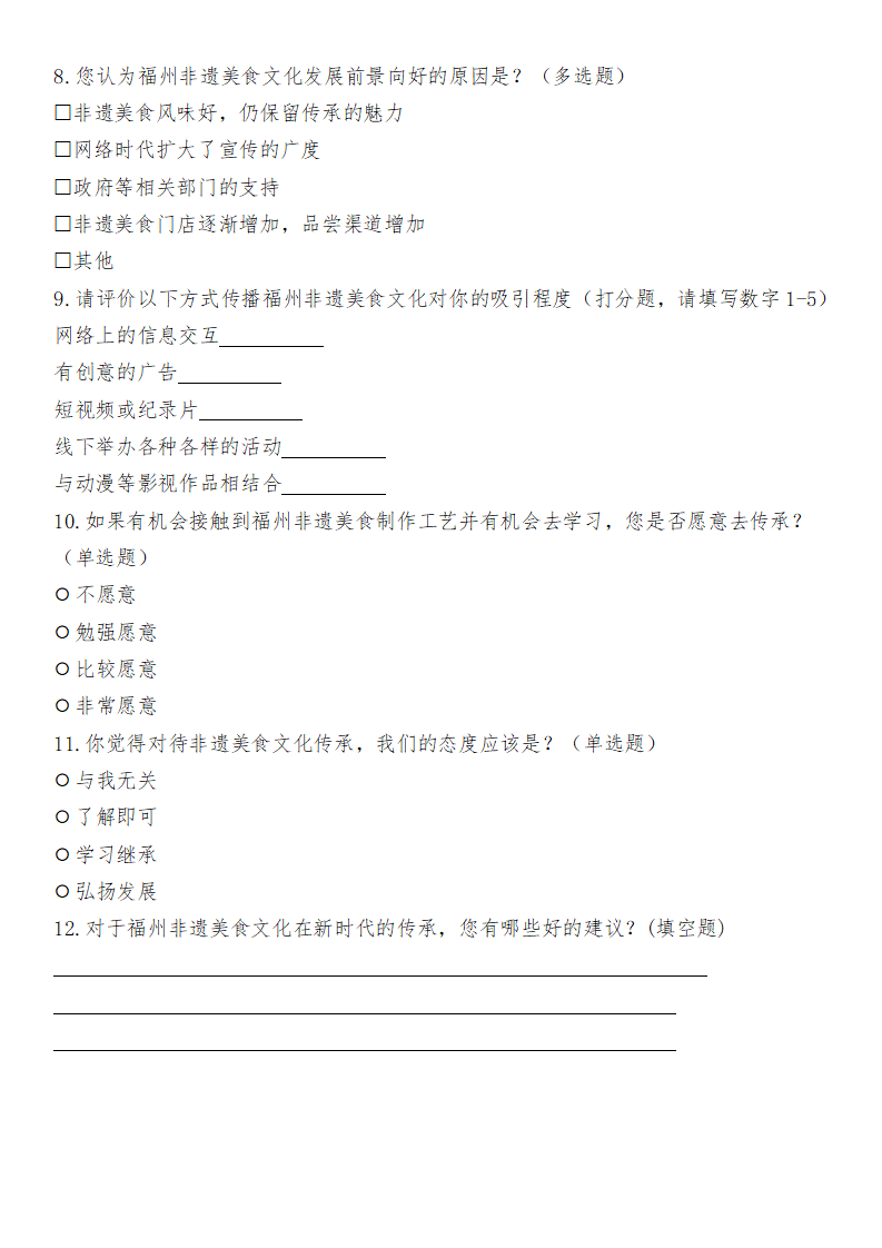 为促进支部成员走出校园扩大知识面,为后续团立项分析活动收集数据,该支部分别在线上和线下开展了调查问卷活动与“非遗美食知多少”问答小游戏,通过支部成员亲身记录与思考,最终将近400份答卷总结归纳成饼状分析图。支部成员由此进一步增强了文化自信,对非遗美食文化传承的问题所在有了更加清晰的认知。