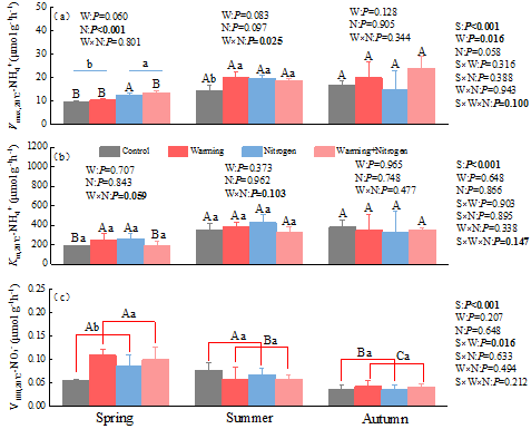 气候变暖和氮沉降对根系氮吸收能力的耦合作用仍是空白,这限制了我们有关气候变化如何影响森林氮循环和生产力的预测,特别是在土壤氮有效性已经很高、具有很大NO3—N淋失潜力的亚热带杉木人工林中。团队基于福建三明森林生态系统国家野外科学观测研究站土壤增温和氮沉降双因子试验,通过测定不同季节下杉木幼树细根15NH4+和15NO3-的吸收动力学及根系性状,探讨增温和氮沉降对亚热带杉木根系氮吸收能力的影响及其机理。结果发现:(1)增温提高了根系对NH4+与NO3-的吸收能力,而施氮提高了根系对NH4+的吸收能力;增温和氮添加对氮吸收动力学均无显著交互作用。(2)根系对NH4+的吸收能力随菌根定殖率增加而提高,NO3-吸收能力随根系呼吸速率增加而提高。结论表明在增温和氮沉降下,杉木根系对NH4+和NO3-的吸收能力提高,从而有利于提高杉木人工林生产力、缓解氮淋失和土壤酸化。研究结果以“Root nitrogen uptake capacity of Chinese fir enhanced by warming and nitrogen addition”为题,发表在国际林学著名期刊Tree Physiology上,博士生姜琦为第一作者,林成芳研究员和陈光水教授为共同通讯作者。