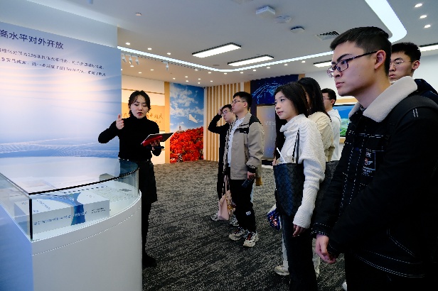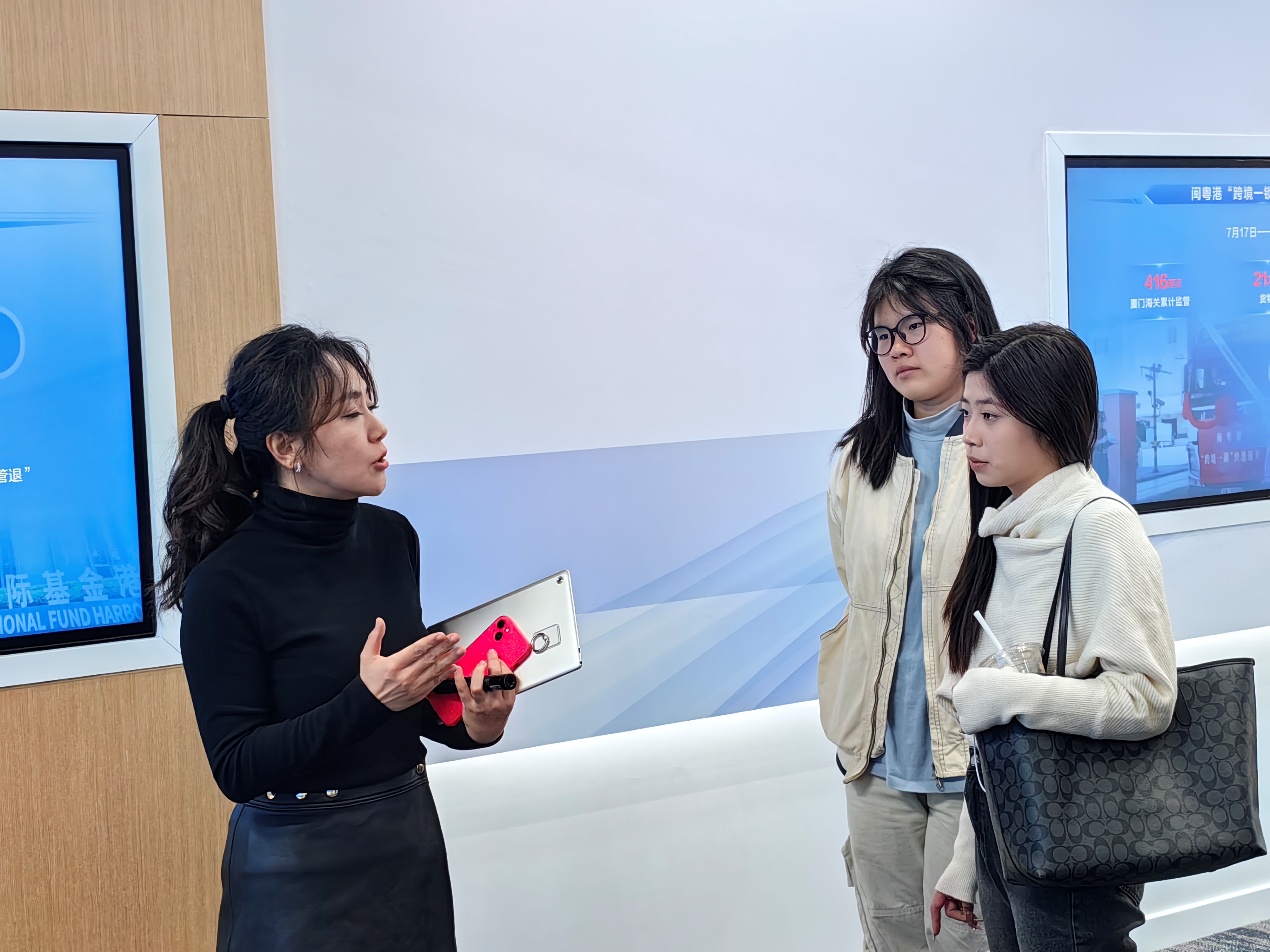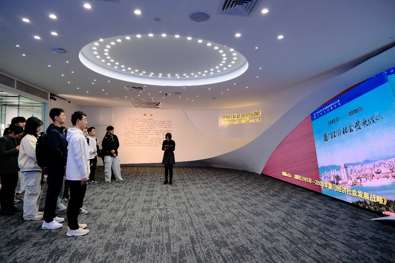 在厦门自贸片区展览馆,实践队成员通过图文展示和案例讲解,系统了解了自贸片区自2015年4月挂牌以来的建设历程、发展成就及其在多个领域取得的重要进展。