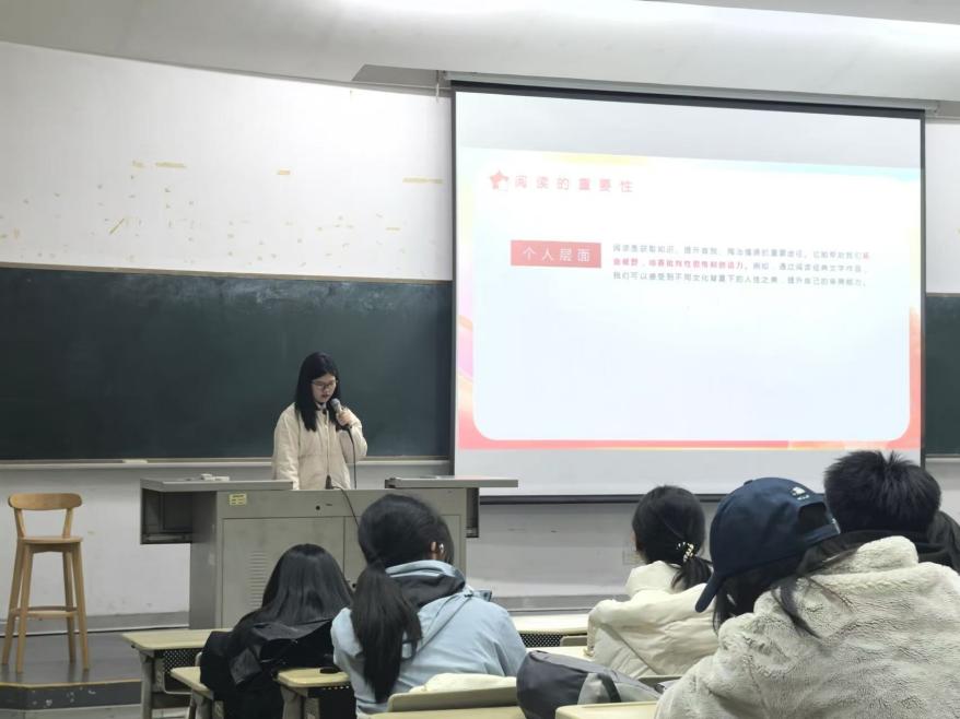 宣讲团成员陈思羽同学在对2022级本科生的宣讲中着重提到,习近平总书记强调阅读对理论学习、文化繁荣、国家民族发展意义重大。我校校长郑家建教授也提出打造多元立体儿童青少年阅读生态的理念,包括立足“国之大者”、打造引领价值的阅读生态,建设“书香校园”等方面。陈思羽还阐述了阅读在个人成长、社会进步、国家发展中的关键作用,指出阅读能提升个人素养,促进社会文明,为国家发展提供智力支持。