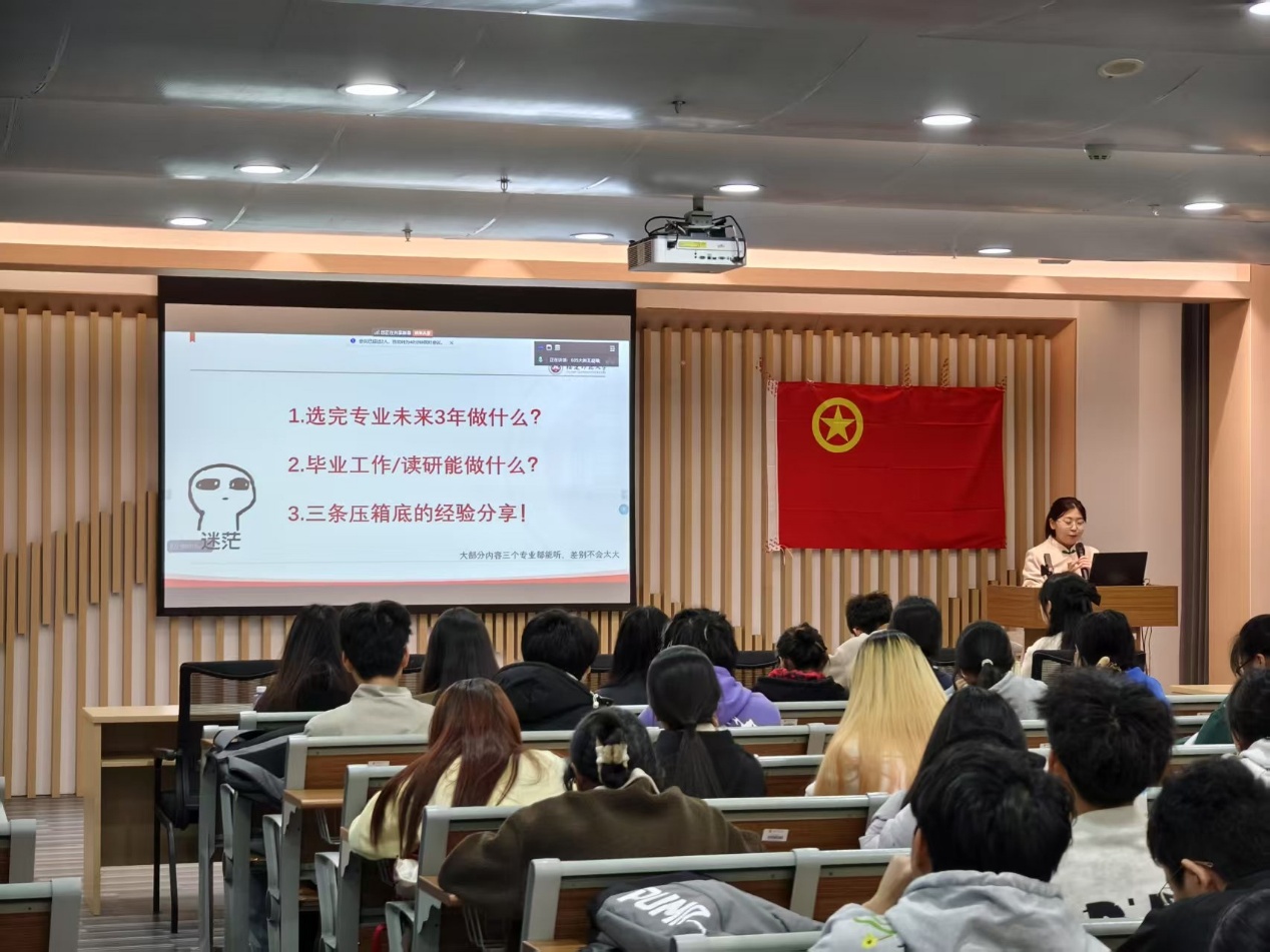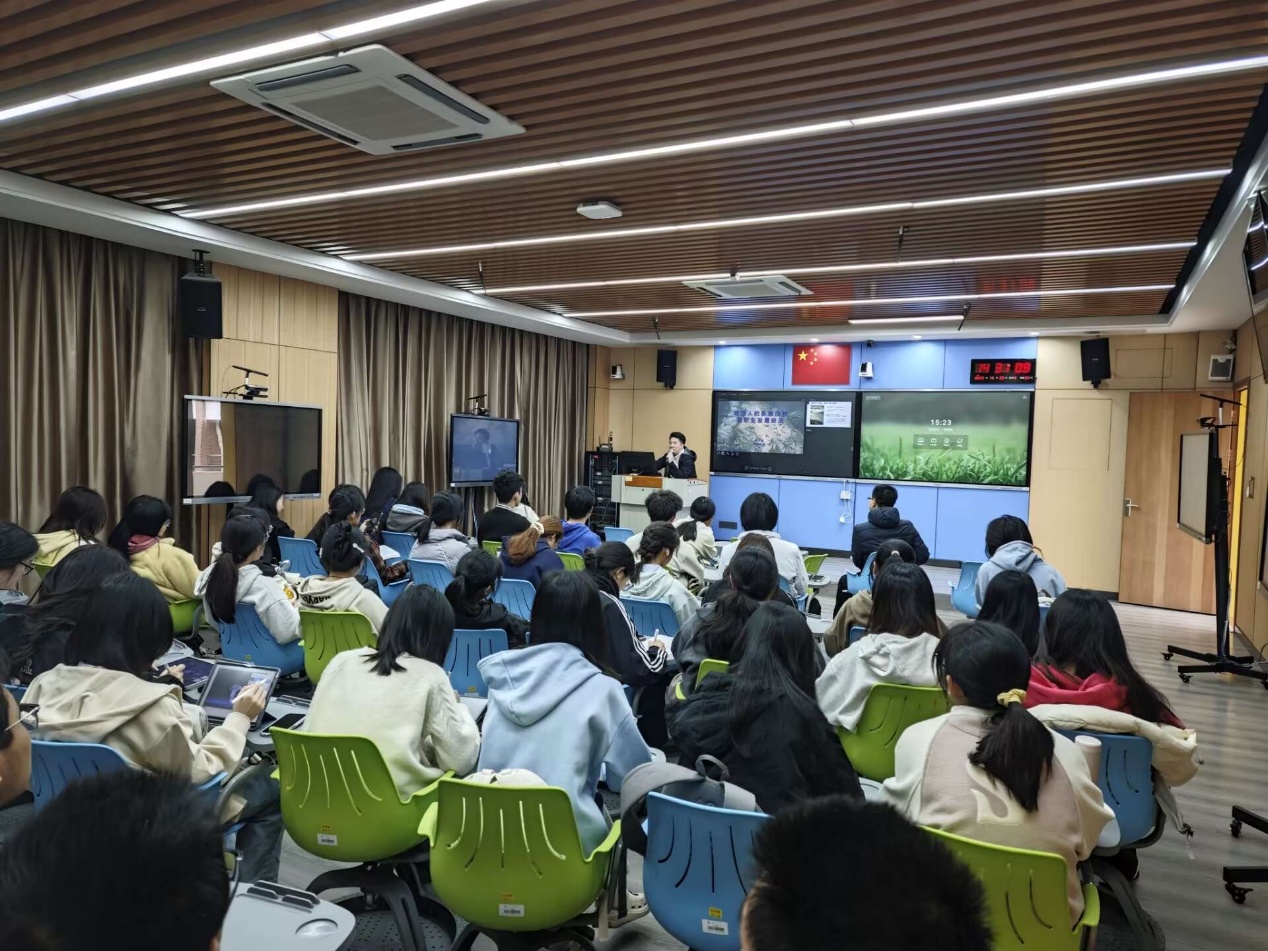 为破解新生职业发展迷思,我院本科2024级构建"年级宣讲+班级定制+个性辅导"三级生涯教育体系,于2024年3月集中开展职业生涯规划教育系列活动。通过专家引领、朋辈示范、实践浸润三维赋能,帮助254名本科新生构建职业认知坐标系,打通专业学习与职业发展的价值链条。