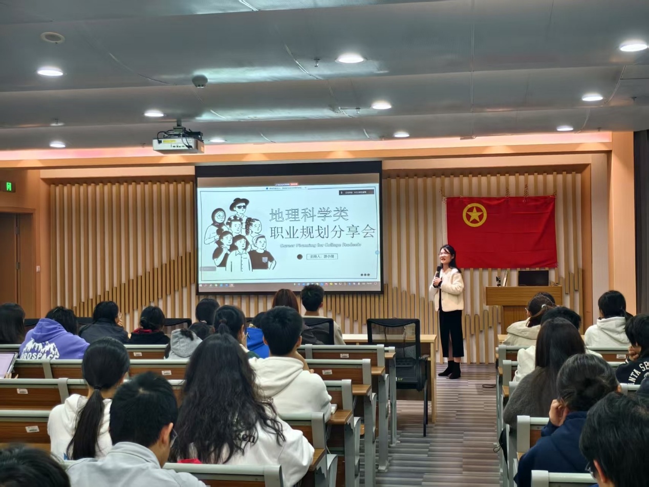 3月28日地理科学类一班、二班班主任游小珺、许明珠举办地理科学类校友论坛汇聚多元发展典型:郑毅翔分享公务员成长路径中的政策研判智慧,李逸菲演绎"职场—深造"螺旋上升发展模式,Nature子刊一作李祺祥揭秘学术攀登的底层逻辑。三重视角破除单一成功叙事,构建"学术科研、公共服务、产教融合"的立体发展坐标系。