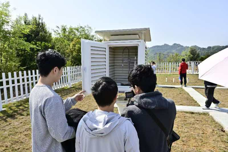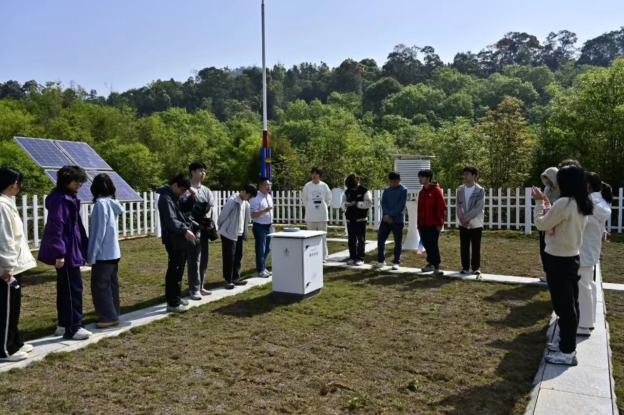 高精度温室气体二氧化碳和甲烷浓度观测站:观测站依托站内国家级标准气象场,实现对大气二氧化碳和甲烷等温室气体浓度的连续自动监测,形成了完整的数据采集、传输和分析体系,让同学们更深入的了解了平常只能在课本中学习的一些气象和生态知识。