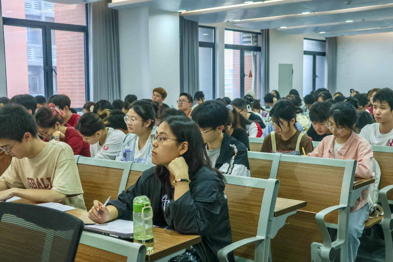讲座围绕“从工科生到文科生、从校媒记者到党报记者——7年经历,聊聊记者这份职业”主题展开。蒋丰蔓以一些优质新媒体报道为引带领学员们走进记者的视野。她提到,不论是做采访还是写作,从事文字工作都应时刻牢记“内容为王”的观念,以优质的内容来抓住读者的心。此外,媒体最重要的东西依旧是观点与价值观,当前,AI工具可以在内容整合或是深度思考上作辅助,但“AI并不能取代人,它只是服务人的工具”,充分发挥主观能动性,仍然是每个文字工作者的必由之路。