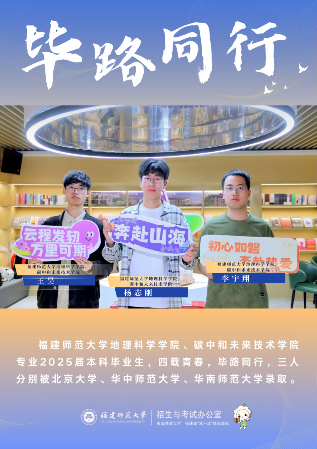 最是钟楼侧边柳,千枝蘸绿写新篇。福建师范大学招生与考试办公室继2024年推出《离歌声声》系列毕业生采访后,联动学生工作部再次推出《毕路同行》专栏,聚焦2025届本科毕业生从入学、成长、毕业、就业的青春叙事,让我们一起聆听青春破茧的声音,见证师大沃土孕育的繁花如何绽放于更广阔的天地吧!