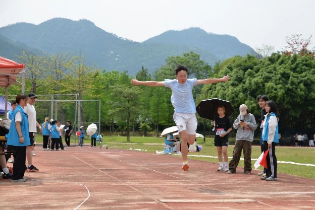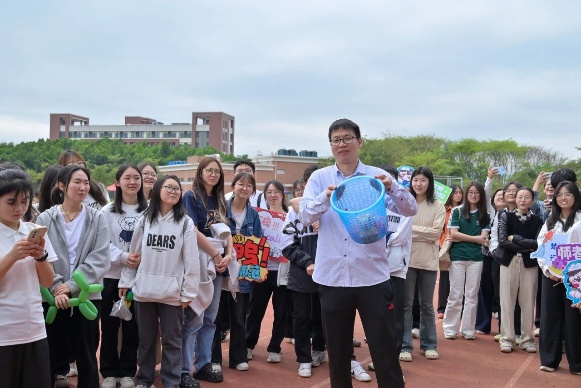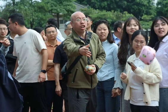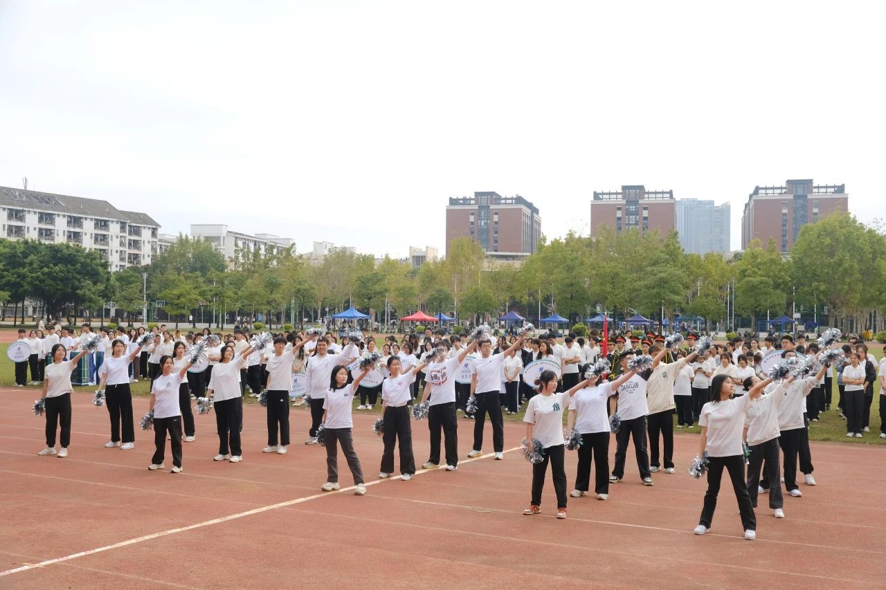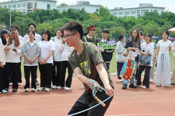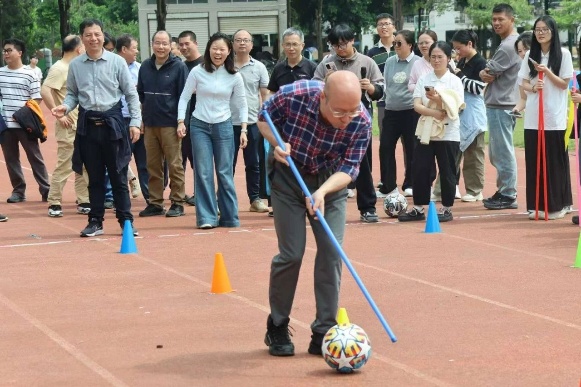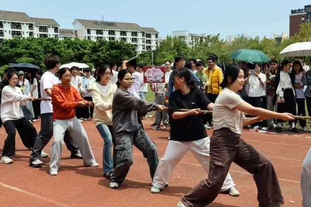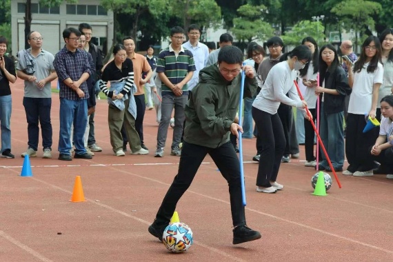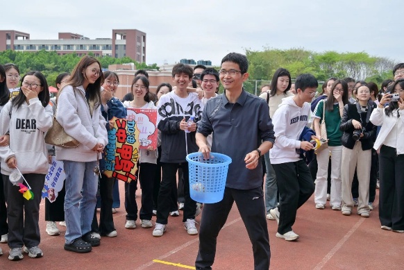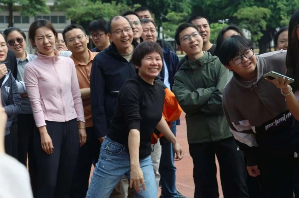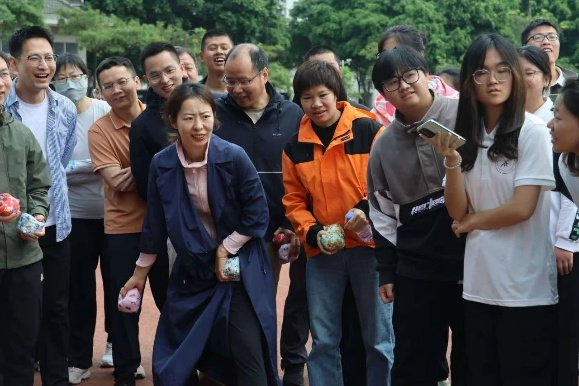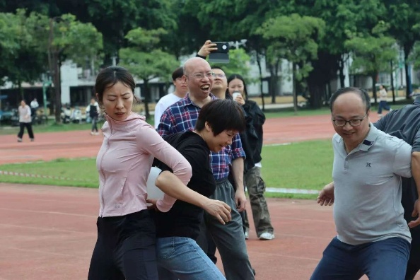 在随后举行的教职工趣味运动会上,平日里讲台上严谨治学的各系老师们化身“运动健将”,在“背篓扔绣球”“穿越雷阵”“通力合作跳大绳”等趣味游戏中大显身手,场边同学们的加油声、欢呼声此起彼伏,整个运动场上气氛热烈、其乐融融。