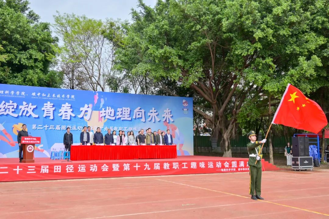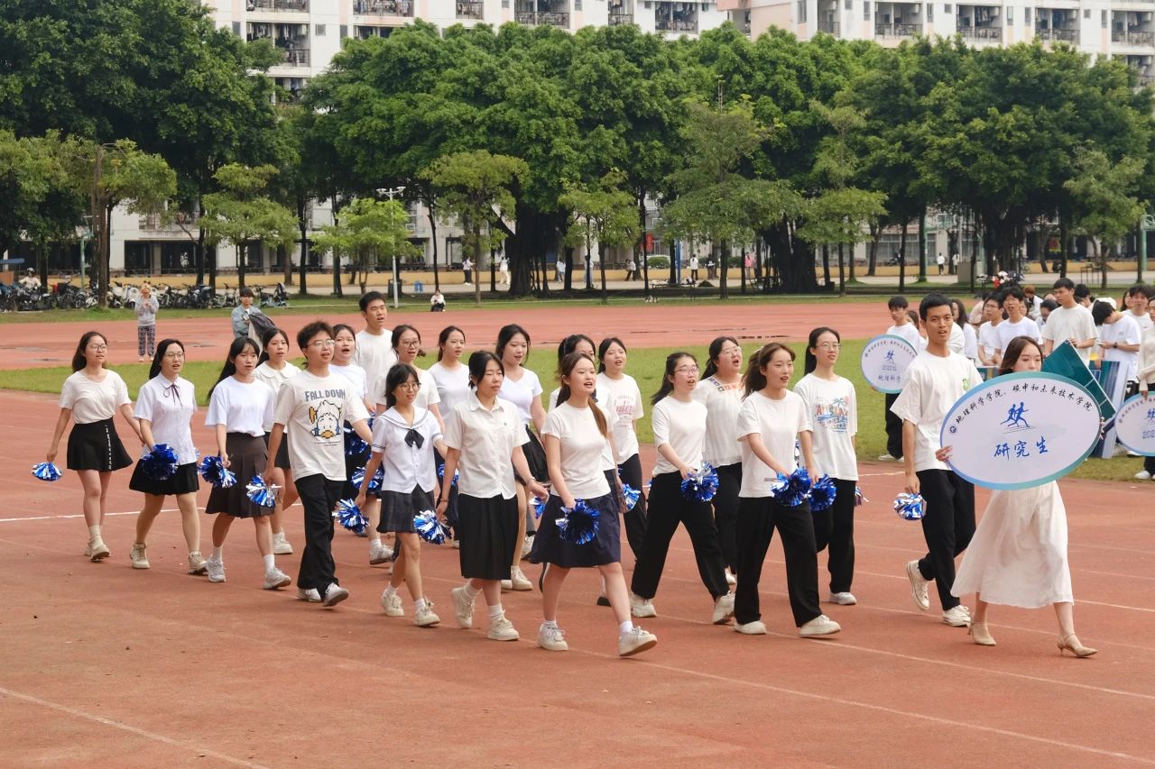 4月27日上午,学院第23届田径运动会暨第19届教职工趣味运动会开幕式在旗山校区西区田径场隆重举行,我院党政领导班子成员,各科室、系、所负责人,教师代表和各年级学生代表参加开幕式。