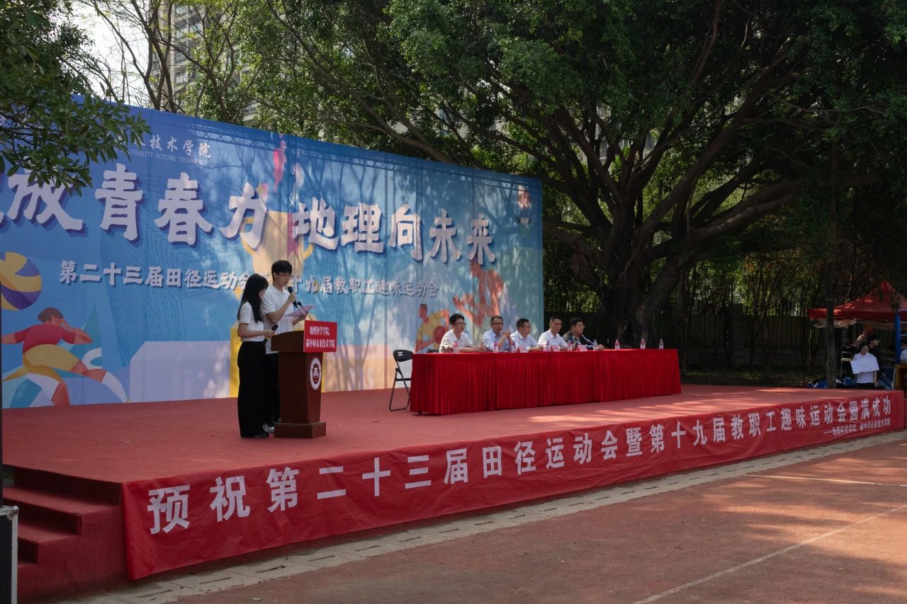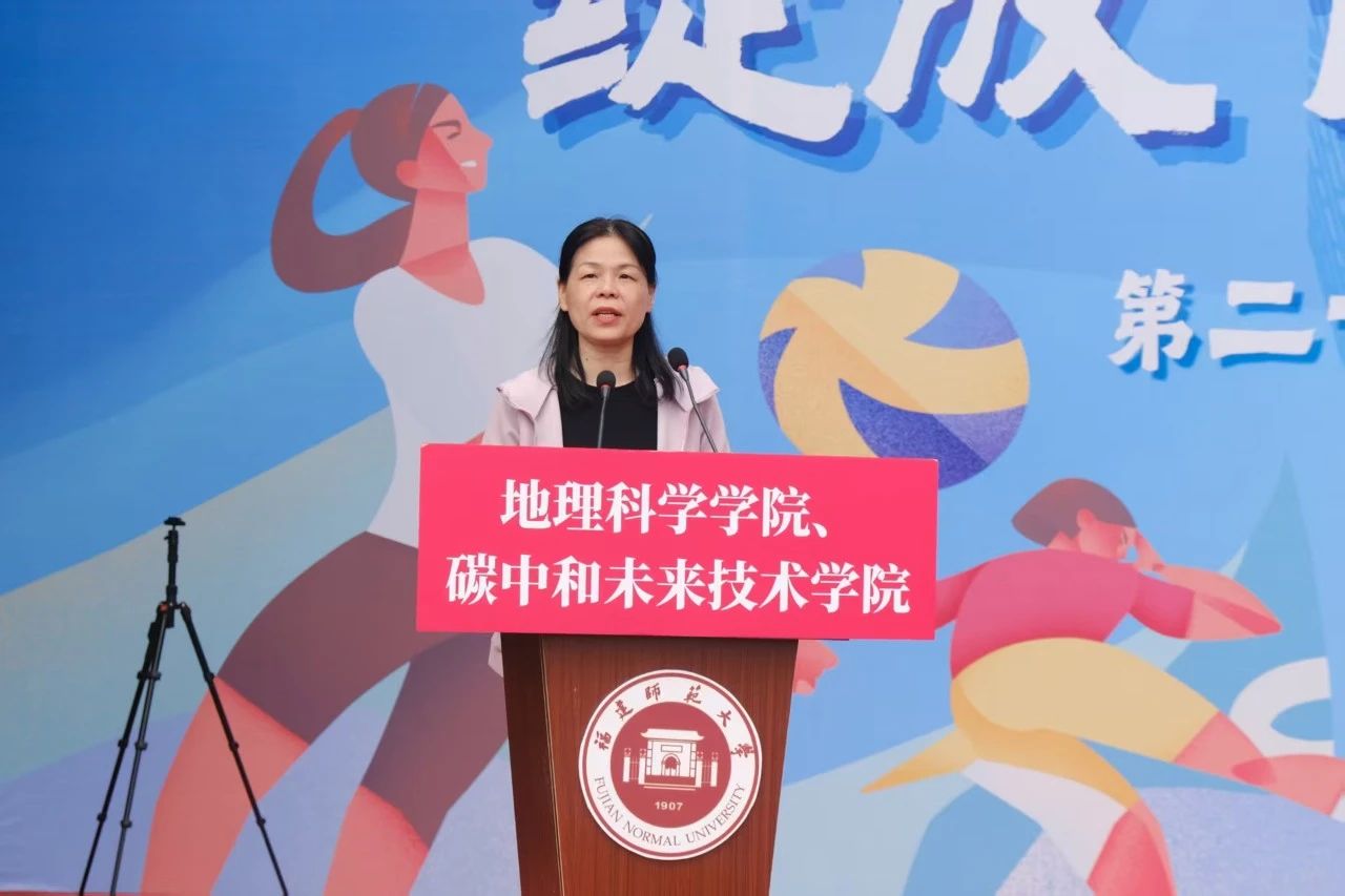 院党委书记林翠容代表学院致开幕词。她回顾了过去一年里学院师生在不断推进学院事业高质量发展的征程上取得的各项成绩,勉励全院师生凝聚意志、拼搏奋进,以中华体育之精神,继续在各自的赛道上奋力奔跑,为实现中华民族伟大复兴中国梦贡献力量。