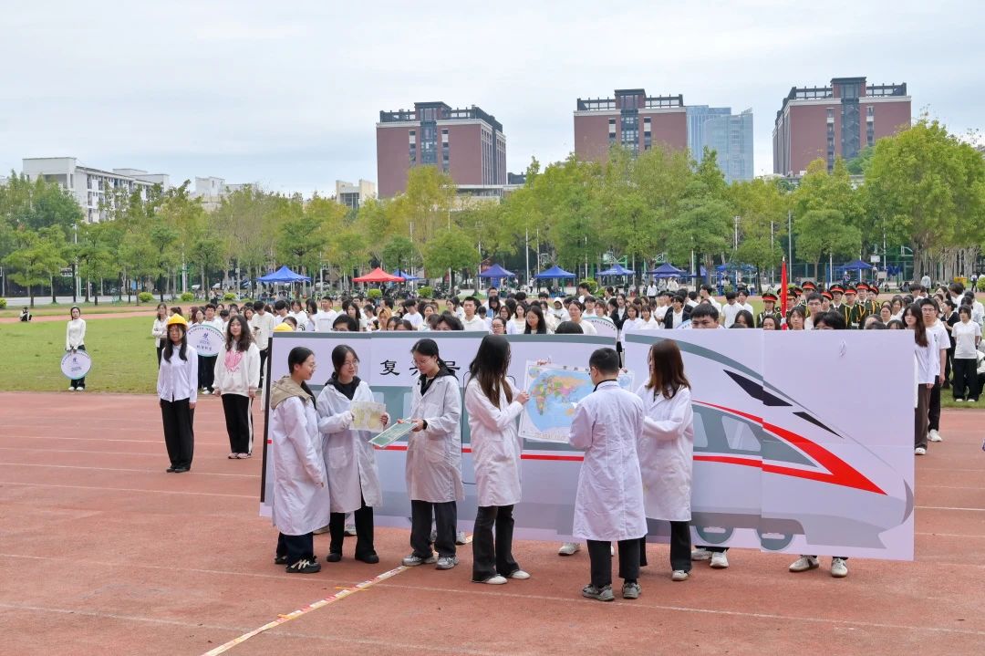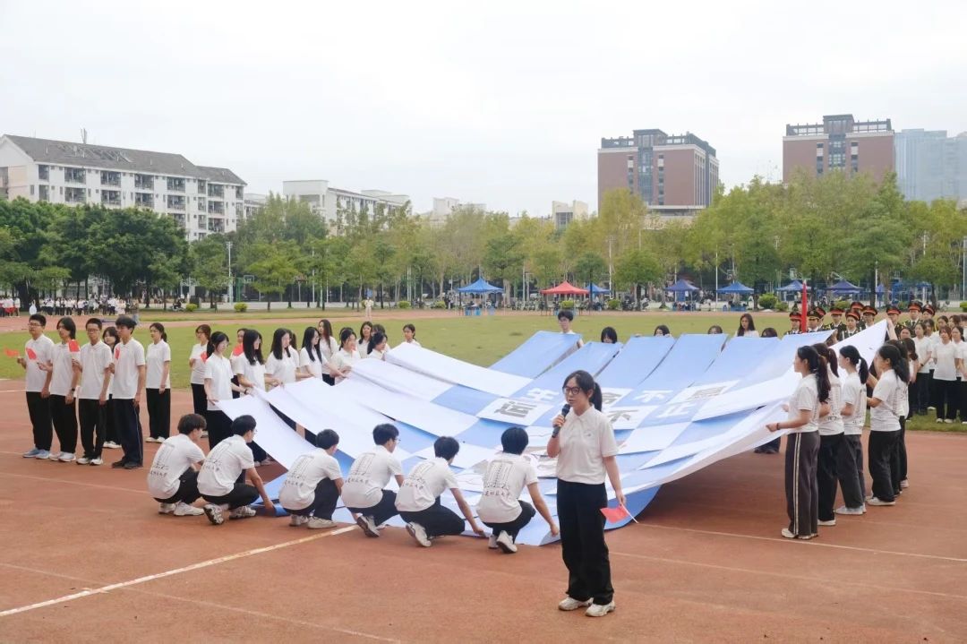 国旗、院旗、各班级表演方阵在昂扬的《运动员进行曲》中依次经过主席台,同学们热情洋溢的表演赢得现场师生的阵阵掌声。
