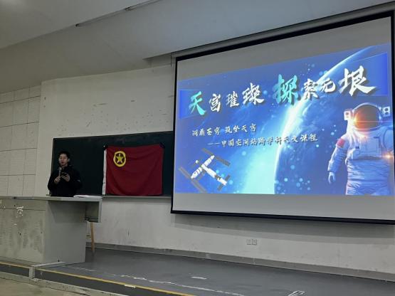 本支部邀请2021级范政彬学长开展《问鼎苍穹,筑梦天宫》天文课程制作经验分享讲座。讲座旨在让同学们借鉴前辈经验,积累科学知识、拓宽教学视野。讲座中,范政彬学长悉心讲解,内容丰富实用。这不仅充实了支部成员的知识储备,还极大激发了大家对天文课程制作的兴趣,助力支部成员在科学探索路上稳步前行。