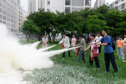 为保证演练实效,演练采取多场次接续进行。章进楼老师向现场师生详细讲解了干粉灭火器的基本构造和实操方法,现场演示灭火流程。在实操环节,各年级舍长们手持灭火器两人一组依次进行灭火演练,操作流程规范,活动取得了预期效果。