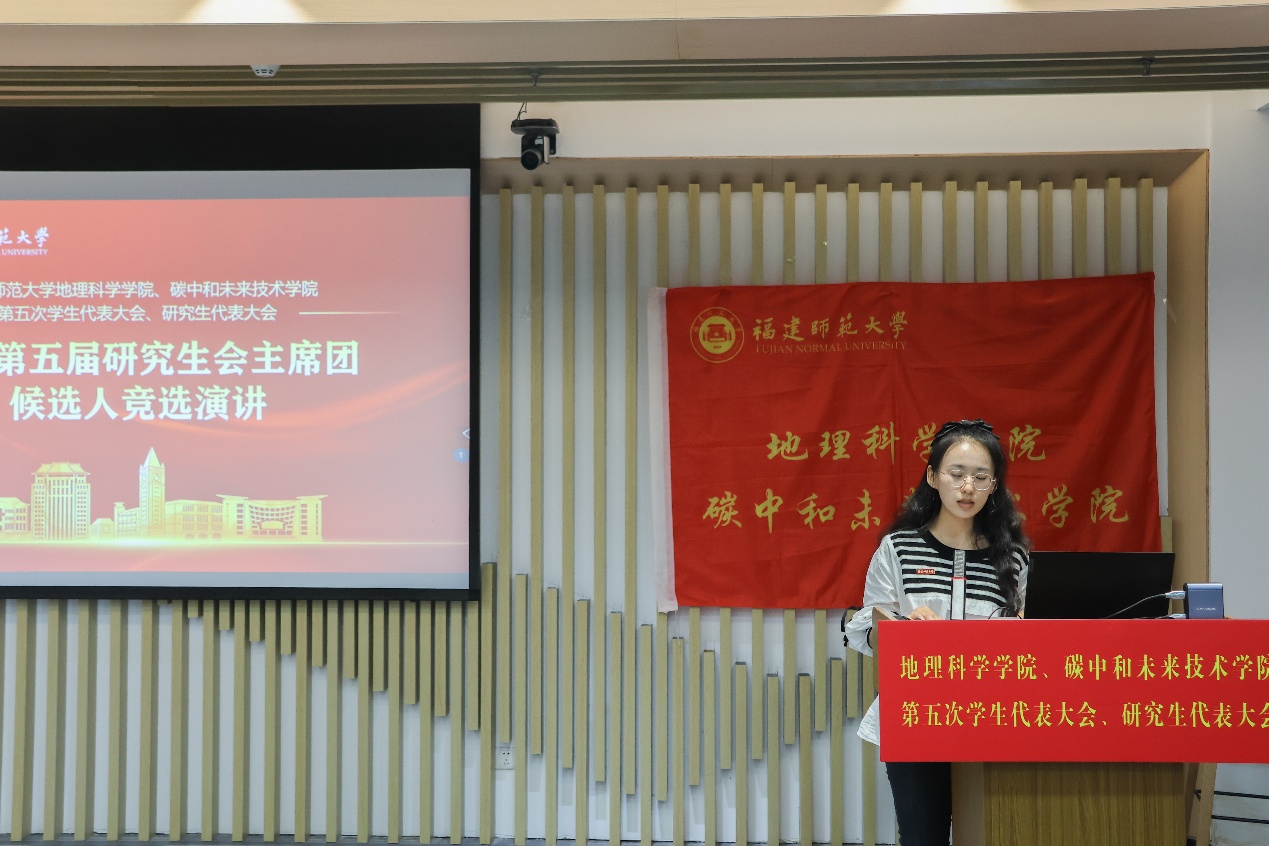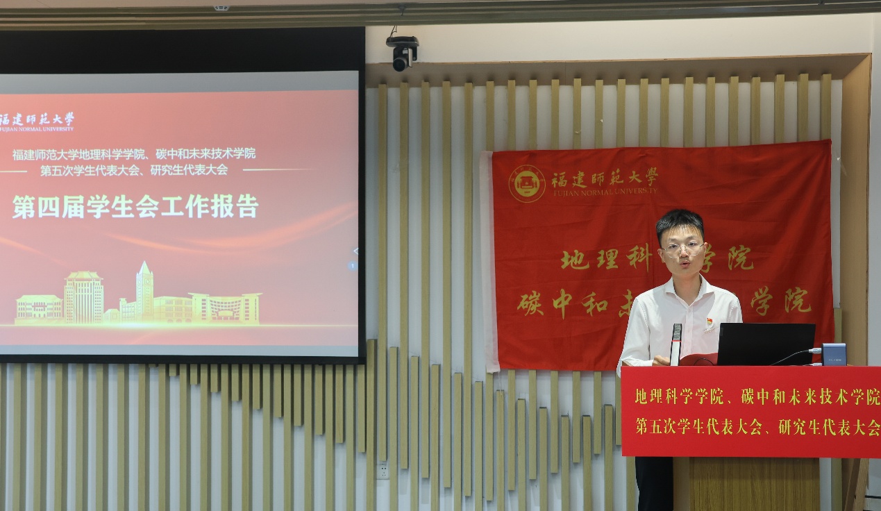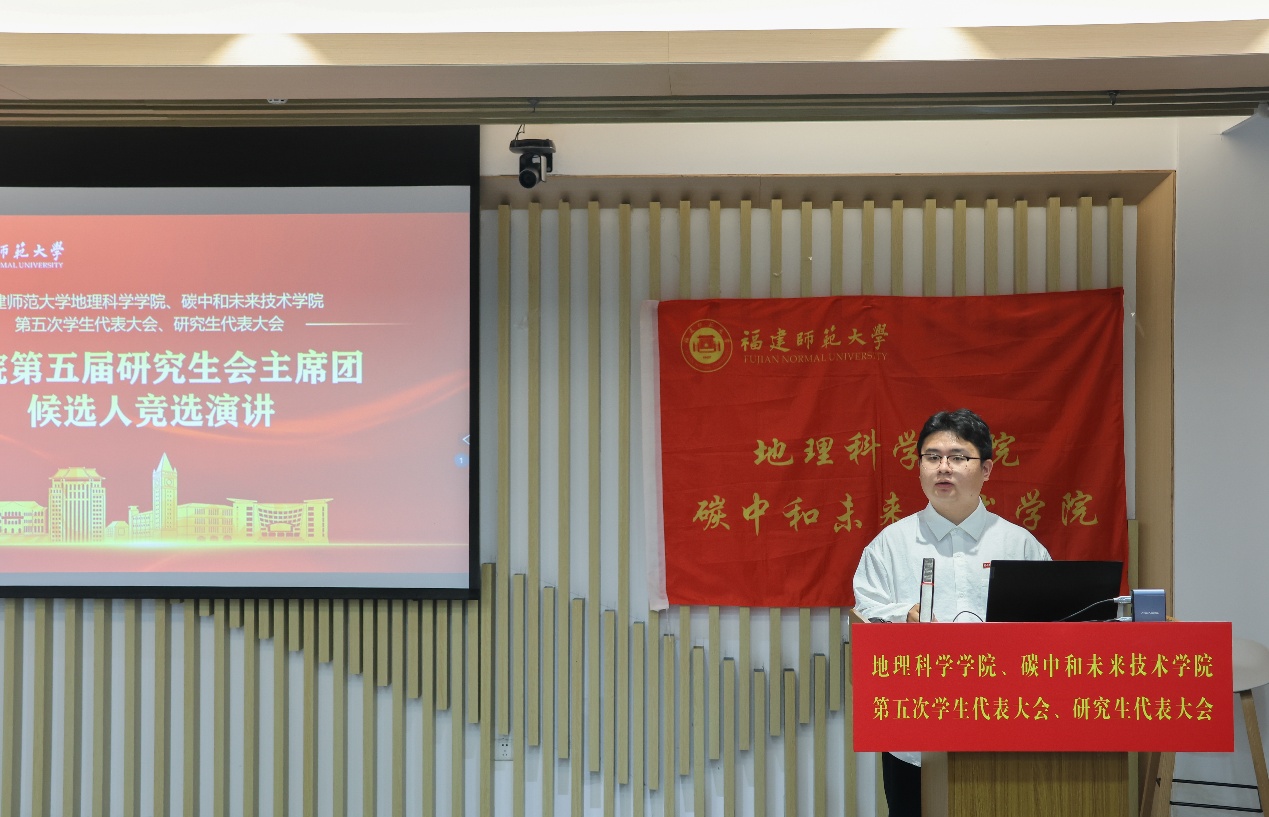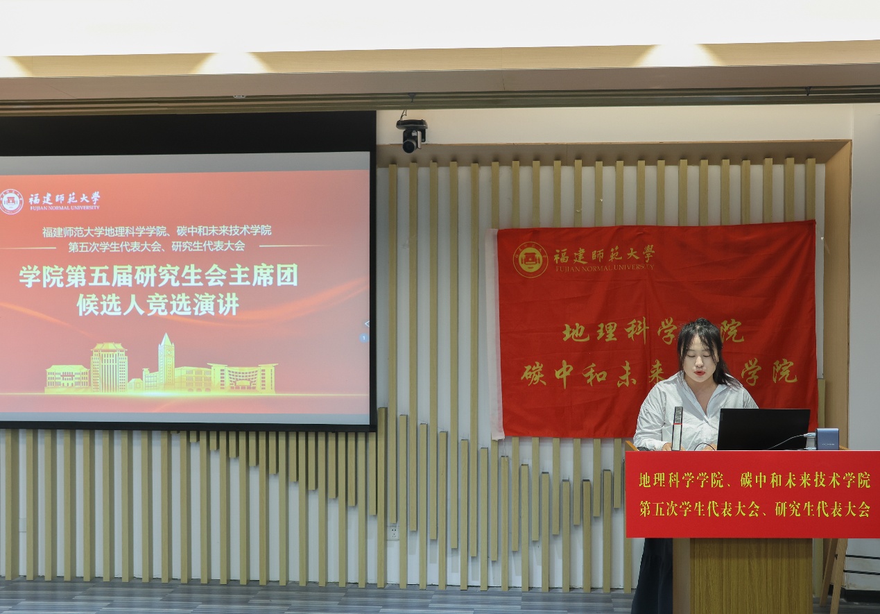 第五届学生会主席团候选人、研究生会主席团候选人依次登台发表竞选演讲。他们结合自身经历和优势,阐述了对学生会、研究生会工作的理解和认识,提出了未来工作的设想和规划,展现了新时代青年学子的责任担当和创新精神。大会审议并通过了《福建师范大学地理科学学院、碳中和未来技术学院第五届学生代表大会主席团选举办法(草案)》《福建师范大学地理科学学院、碳中和未来技术学院第五届研究生代表大会主席团选举办法(草案)》,通过了大会总监票人、监票人及总计票人、计票人建议名单。全体代表认真履行职责,通过无记名投票的方式,选举产生了学院新一届学生会、研究生会主席团成员。