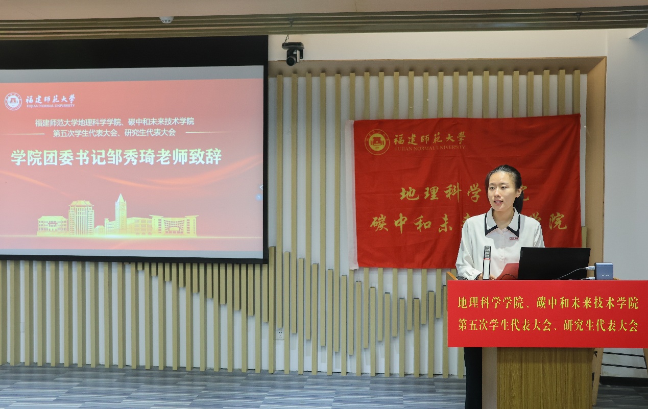 在闭幕式上,团委书记邹秀琦回顾了过去一年学院团学组织在思想引领、组织建设、服务同学等方面所做的工作和取得的成绩,明确了未来的目标任务与发展方向。邹秀琦对新一届学生会、研究生会主席团成员及全体代表提出三点期望:一是要坚定理想信念;二是要练就过硬本领;三是要锤炼品德修养。她鼓励同学们立鸿鹄之志、展鲲鹏之翅,做新时代模范青年,以实际行动为学院发展和国家建设贡献力量。
