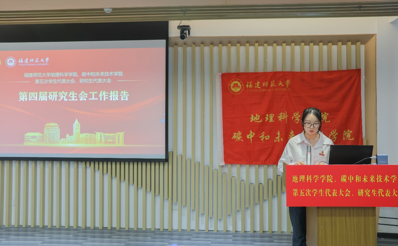 院研究生会执行主席王俐俐代表第四届研究生会向大会作工作报告。她详细介绍了研究生会在学术科研创新、社会实践践行、文化交流融合等方面开展的特色工作,有力凸显了研究生会为促进研究生全面发展所做出的积极贡献。