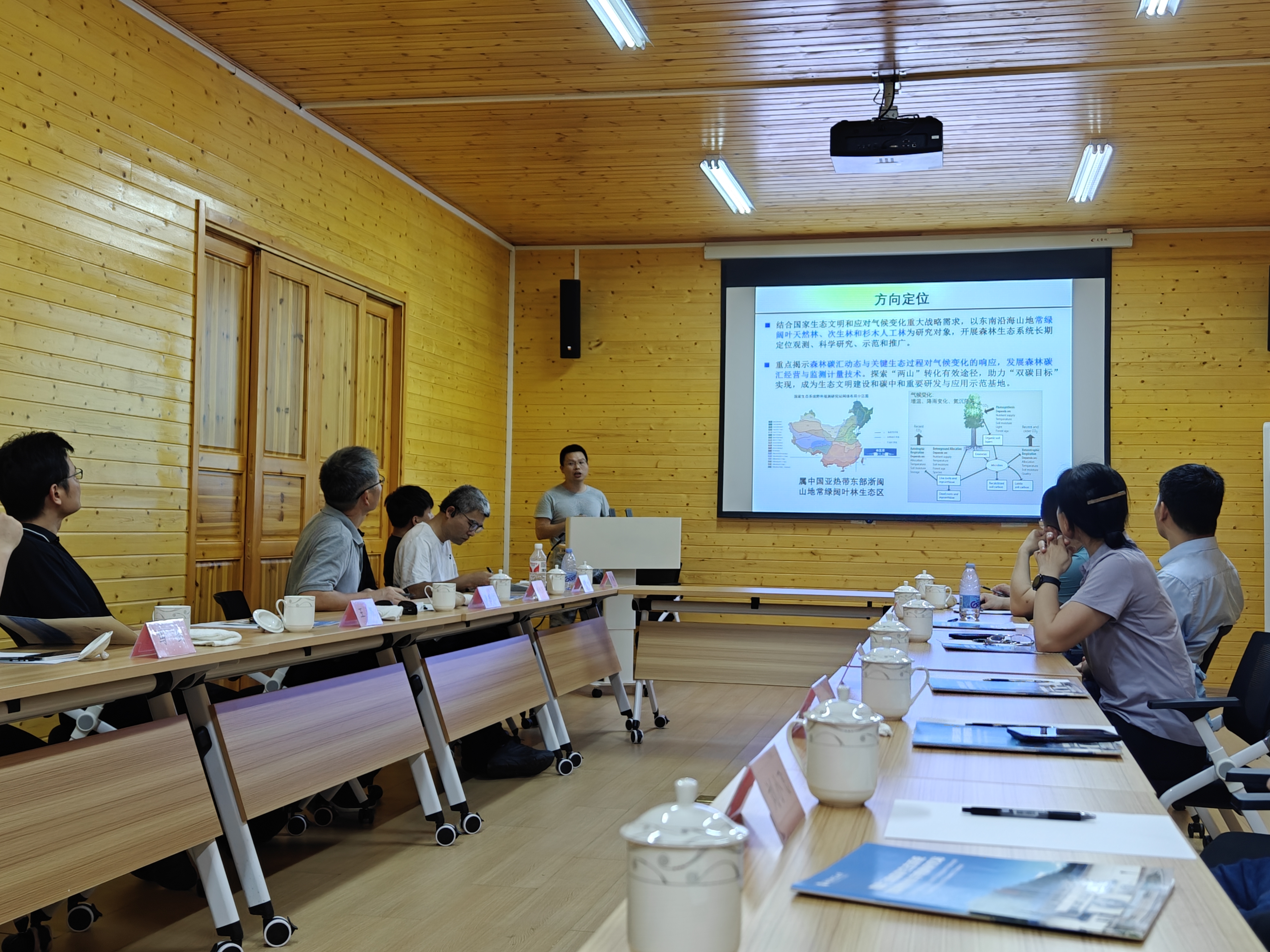 近日,厦门大学环境与生态学院党委书记王晟、福建台湾海峡海洋生态系统国家野外科学观测研究站(台海站)站长黄邦钦教授等一行赴我院福建三明森林生态系统国家野外科学观测研究站(三明站)开展调研交流。我院党委书记林翠容、副站长陈光水教授等陪同参加考察活动。王晟一行实地参观了三明站内已建立并稳定运行10多年的杉木人工林和天然林土壤增温、模拟降水变化、人工促进常绿阔叶林天然更新等控制试验研究平台。 双方就野外原位控制试验研究平台建设与管理、森林与滨海碳汇研究、台站研究特色与方向等开展深入交流。