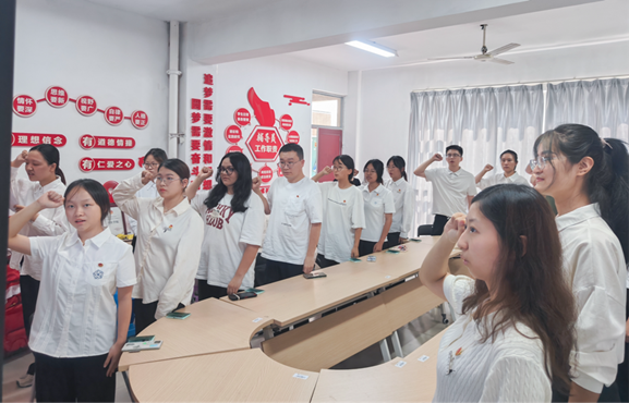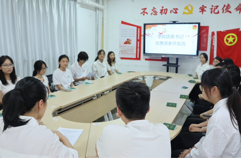 近日,我院2025年上半年新团员入团仪式在李苑1栋“一站式学生社区”党团活动室举行,院团委书记邹秀琦、2023级辅导员郑晨宇、2024级辅导员郑新杰及本次新入团团员参加入团仪式,仪式由院团委副书记王煊鸿同学主持。