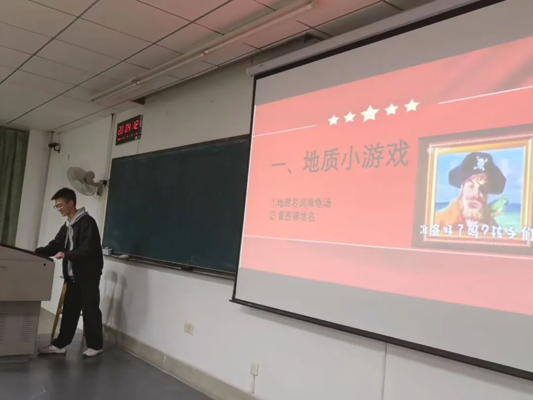 团支部于笃行楼内组织开展了主题学习活动。全体团员共同观看了教育类视频,随后团员代表分享了对教育的见解以及师范生应如何担当责任。团支书进一步阐述了习近平总书记关于教育的重要论述,使支部团员对教育事业有了更深刻的认识。随后,地质知识小游戏“地理名词海龟汤”和“看图猜地名”将活动氛围推向高潮,活动充分调动了团员们的积极性,使团员们更加深入理解地理知识。此次活动使支部团员深入了解到中国教育的发展历程及其重要性与意义,激发了师范生的使命意识与责任意识。