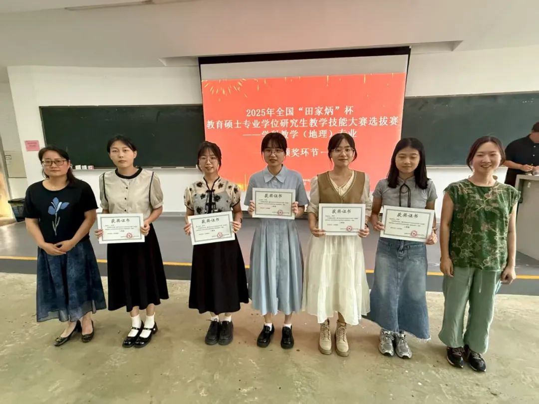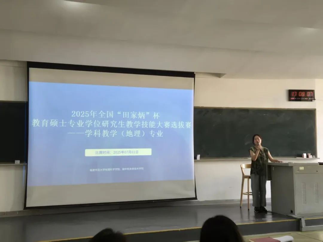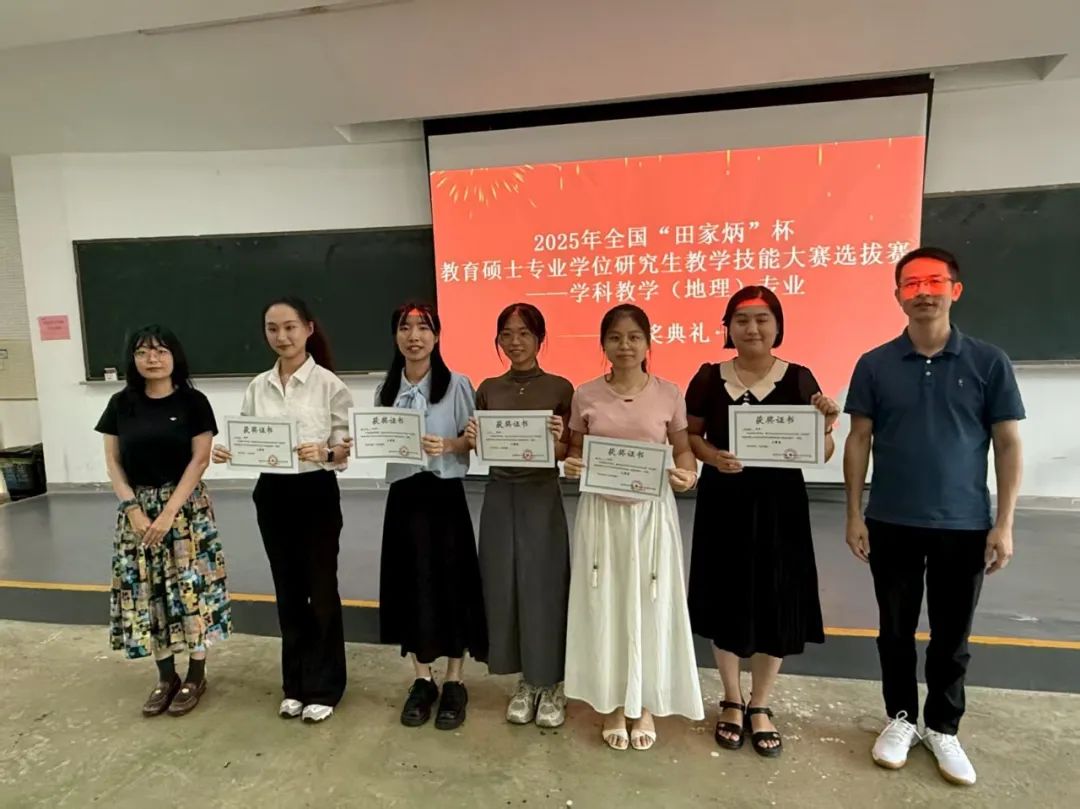根据比赛规则和综合表现,总分前5名的选手将代表我校参加2025年全国“田家炳杯”全日制教育硕士专业学位研究生学科教学(地理)专业教学技能大赛。