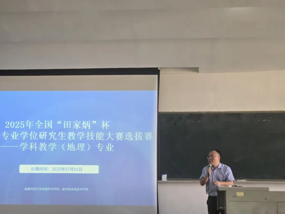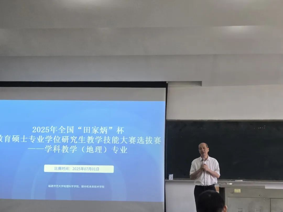 为持续夯实我院教育硕士师范生的教学技能根基,全面提升其教学能力与教学效果,7月1日,我院于知明楼2-202成功举办2025年“田家炳杯”学科教学(地理)专业硕士研究生教学技能大赛选拔赛。本次大赛特邀付进华老师、陈丽丽老师、刘恭祥老师、张党玉老师、林峰老师、马倩怡老师等担任现场评委。