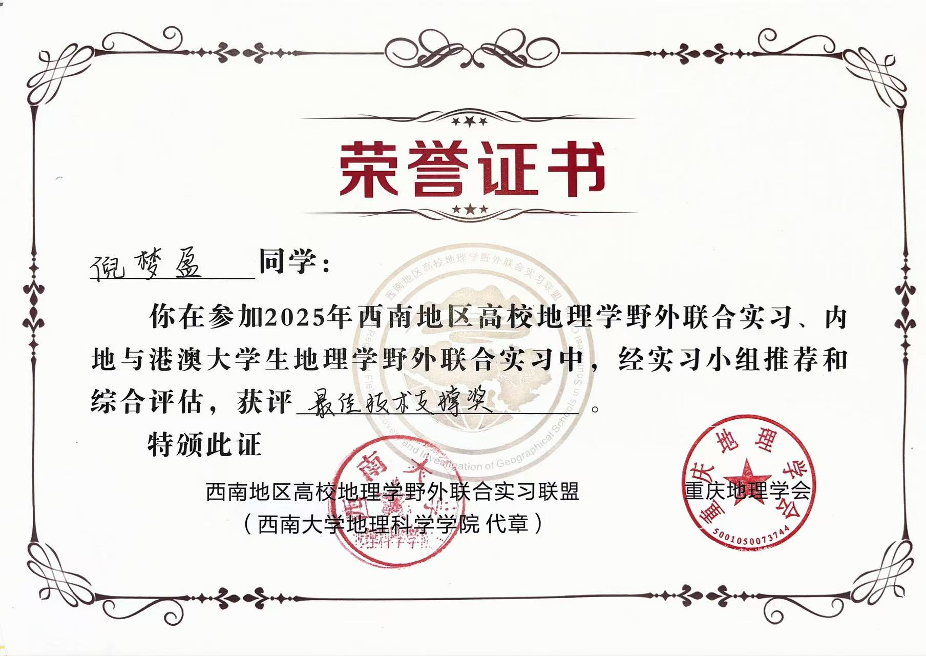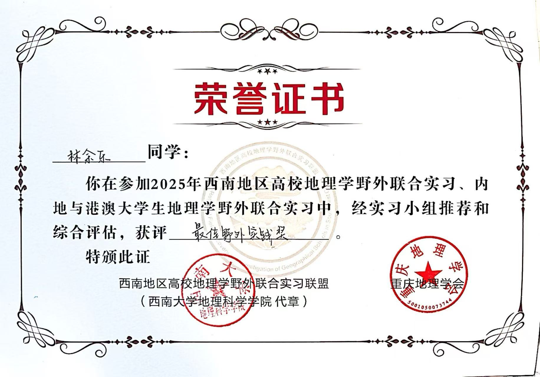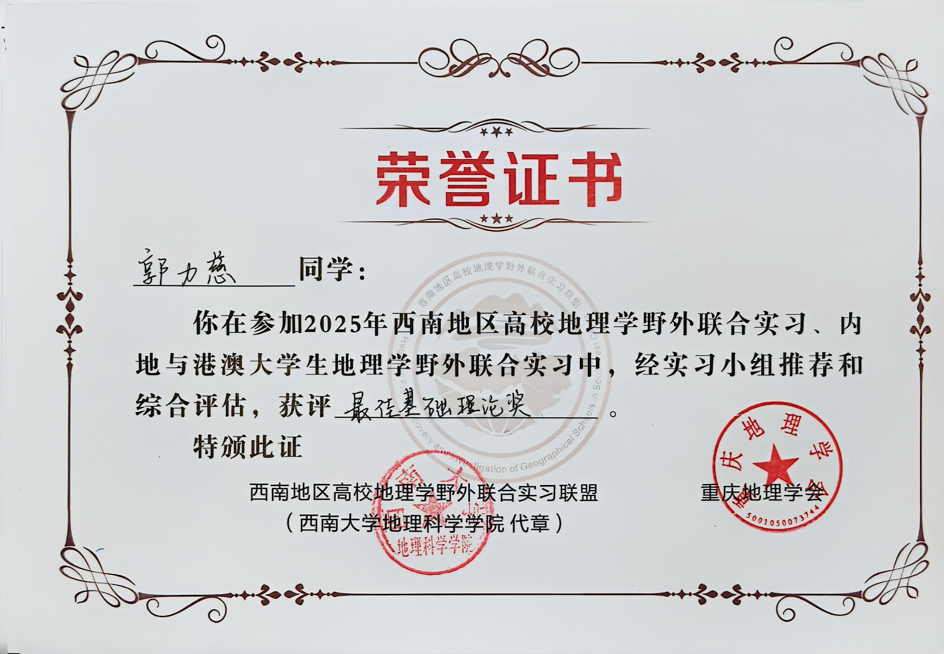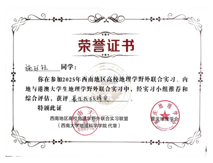 2025年7月11日至24日,我院陈秀玲、王晓文两位老师带领来自2022级地理学国家人才培养基地的倪梦盈、郭力慈、施廷钰、林余乐等四位同学,参加了2025年西南地区、内地与港澳大学生地理学野外联合实习活动。