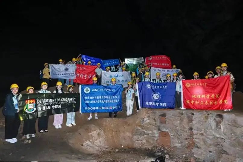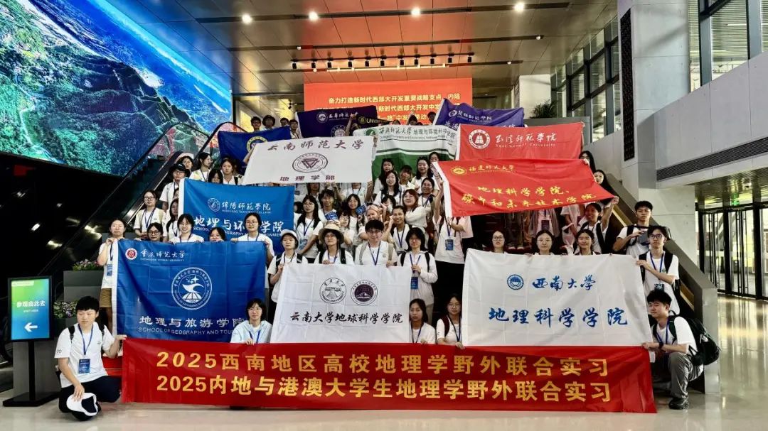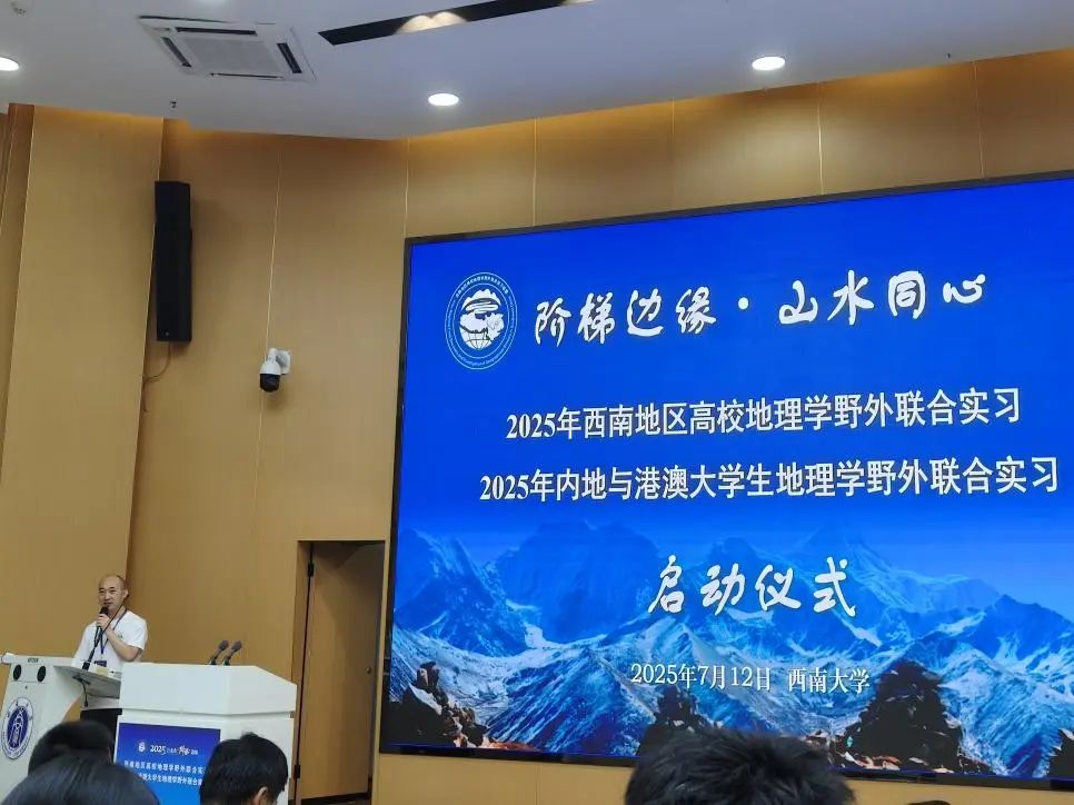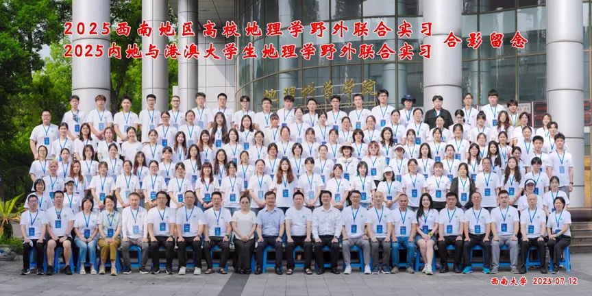 2025年7月11日,我院2022级的倪梦盈、郭力慈、施廷钰、林余乐等4位同学在陈秀玲与王晓文老师的带领下,开始为期14天,以“行走在阶梯边缘”为主题的西南地区高校地理学野外联合实习、内地与港澳大学生地理学野外联合实习。2025年7月12日上午,实习团队在结束了于西南大学举行的启动仪式后,正式开启了横跨川渝滇的考察征程。师生们以“行走在阶梯边缘”为主题,深入探索西南地区的自然奇观与人文脉络。