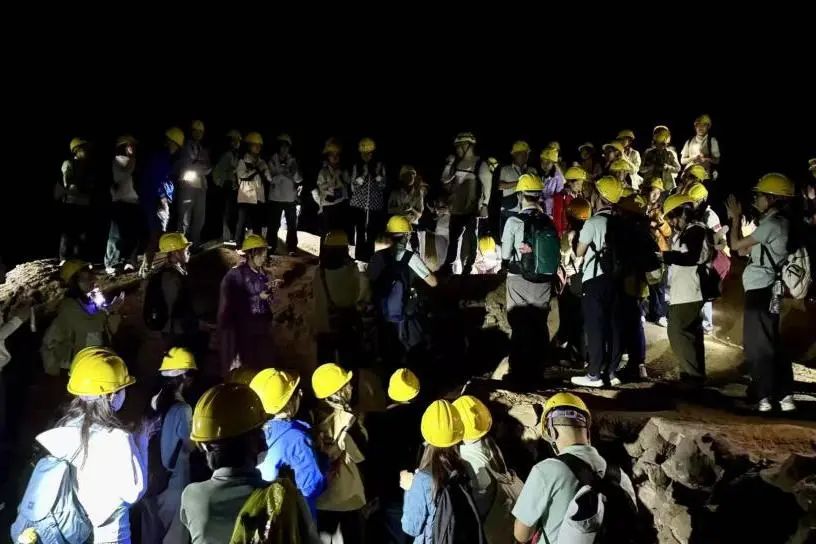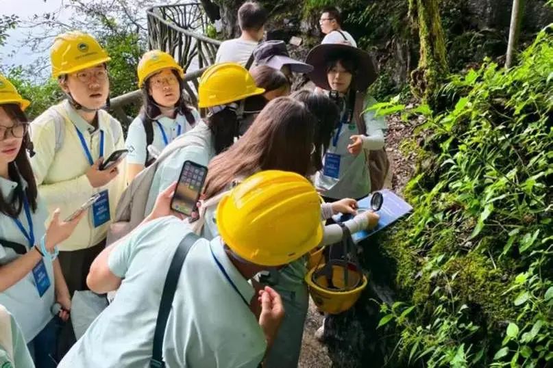抵达后,师生们首先进入未对游客开放的金佛山洞穴进行考察。在专业指导和设备的辅助下,大家头戴安全帽,手持电筒,深入地球内部。洞内独特的潜流带标志、天沟等地貌形态,以及古代熬硝活动的考古遗迹,让书本上的地质名词变得鲜活而具体。这次探洞之旅,让同学们对洞穴喀斯特的发育过程有了第一手的认识。