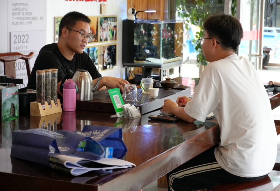 在新征程中,如何进一步推进赤溪村转型发展是实践队调研的重点内容。实践队成员被大学生返乡创业的故事所感动。赤溪村大学生杜赢放弃城市工作,返乡创立赤溪村首家标准化茶叶加工厂。通过整合村内零散茶园,引入现代化制茶工艺,打造“畲乡白茶”品牌。2024年茶厂产值突破400万元,带动周边30余户茶农增收。此外,近年来赤溪村扩建40亩智能菌菇大棚,引入先进菌种技术,发展村内新兴食用菌产业,改变了村内原有只依赖白茶产业的单一产业局面,推进乡村转型发展。同时,赤溪村深入挖掘村内畲族文化,打造畲族文化体验馆,推出沉浸式畲艺研学体验,推陈出新畲族“四月四”凤凰节活动,年接待游客超10万人次。“脱贫是生存,振兴是生活——要让村民活得有尊严!”赤溪村吴贻国书记深情说到。实践队相信,赤溪村乡村振兴道路一定会越走越宽广。