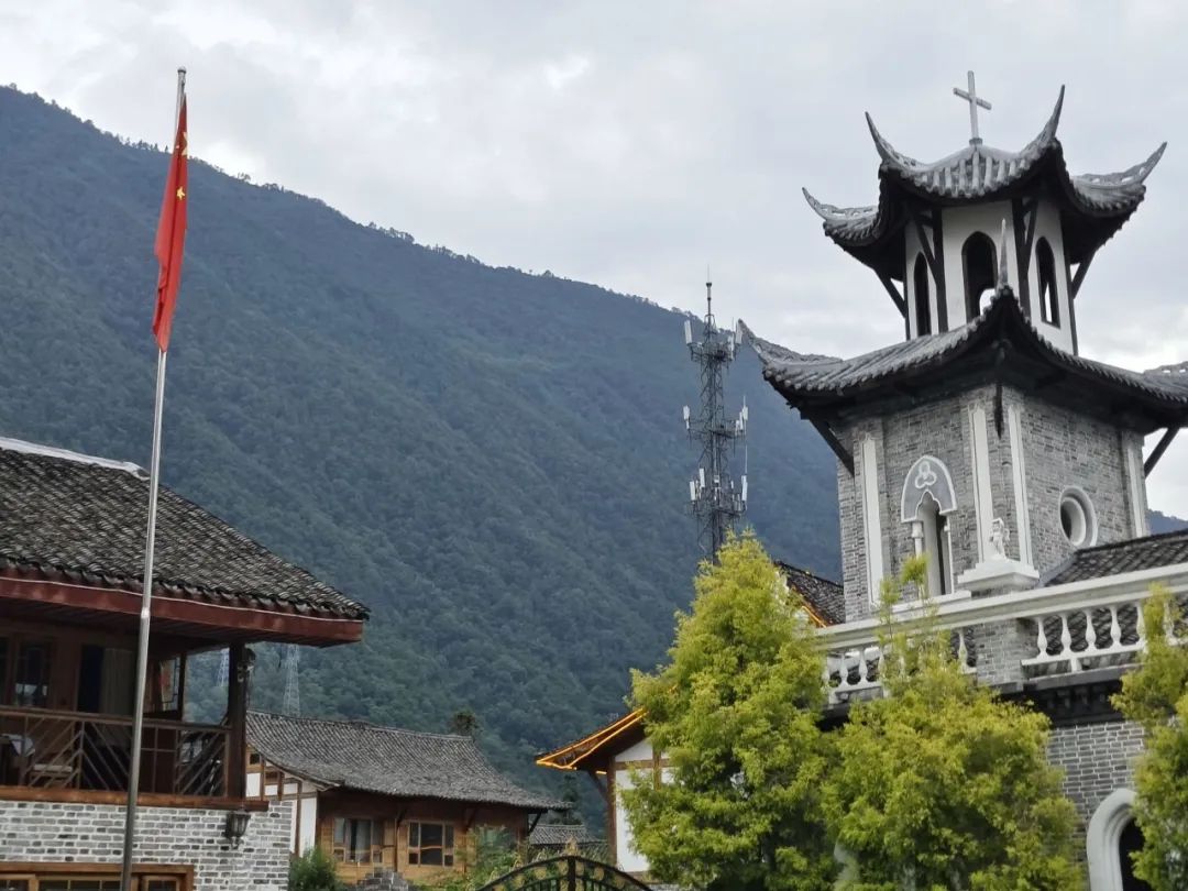 通过泸定桥的交通辐射效应,坐落于贡嘎山东麓的磨西古镇成为茶马古道上的商贸重镇。其融合横断山区各民族风情,近代西方探险家传教士的基督教文化,及红军长征的红色历史,多元碰撞、多元交流,汉式餐饮与藏餐小店相邻,天主教堂与红军长征陈列馆并存,茶马古道的马店遗址与当代文旅的文创业态交织,无不体现了地理区域过渡带上兼收并蓄的文化包容力,也让实习队员体会到区位因素在人地关系塑造方面发挥的重要作用。