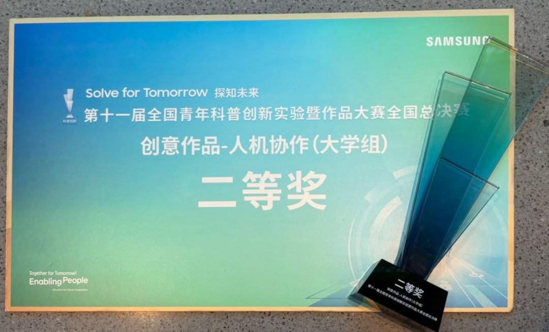 7月29日-7月31日,由中国科学技术协会主办,中国科学技术馆和中国科协青少年科技中心承办的第十一届全国青年科普创新实验暨作品大赛在安徽省科技馆成功举办,我院“壹碳到底”团队代表我校参赛(团队成员:梁鑫宇、任笑瀛、刘铠源、吴杰宸,指导老师:钟小剑、曾宏达),经作品展示、现场路演和问辩等环节,作品荣获创意作品——人机协作(大学组)二等奖。