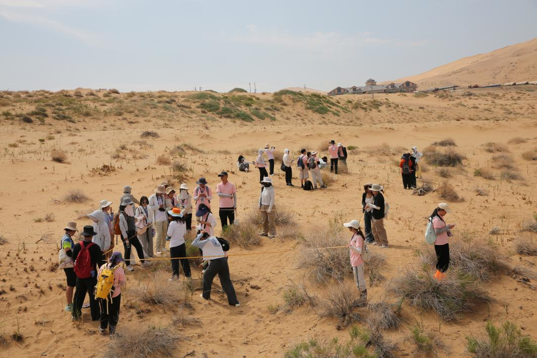 随后,在老师的带领下,同学们在沙漠中进行了土壤剖面和植被样方的调查。通过对不同深度土壤层的采样和观察,分析了沙漠土壤的结构和成分,让同学们对沙漠有了更为深入的了解。尽管这里的植被较为稀少,但白刺、梭梭、合头藜等耐旱植物依然在这里顽强生长。这些植物对维持沙漠生态系统的平衡起到了重要的作用。