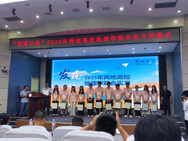 下午5点,本次“发现计划”联合实习闭幕式准时开始。兰州大学资源环境学院副院长管清玉教授向全体成员致辞,感谢各高校的指导教师们悉心指导和辛勤付出,并对积极参与此次实习的同学发表了深情寄语。在颁奖典礼上,我院成员的各自所在小组分别获得本次实习总结汇报的一等奖、二等奖和三等奖。