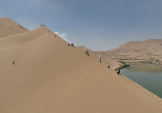 巴丹吉林沙漠是世界上海拔最高的沙漠之一,拥有面积约5.2万平方公里的辽阔区域。在巴丹湖前,李卓仑老师向同学们提出问题,巴丹吉林沙漠拥有世界上相对高度最高的沙山,这些沙山如何形成的?沙漠中110个常年积水的湖泊,形成了独特的沙漠湖泊景观,这些水是从哪里来的?为什么能形成常年积水的湖泊?以及沙山和湖泊能够共存原因是什么?