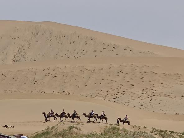 中午休息时,同学们也尽情体验了沙漠的独特乐趣。大家纷纷挑战爬高大的沙山,手脚并用地向上攀登,感受着沙子在脚下流动的奇妙触感,登顶后俯瞰沙漠全景,壮丽景色让人叹为观止。有的同学骑上了骆驼,随着骆驼稳健的步伐在沙漠中漫步,仿佛穿越回了古代的丝绸之路。