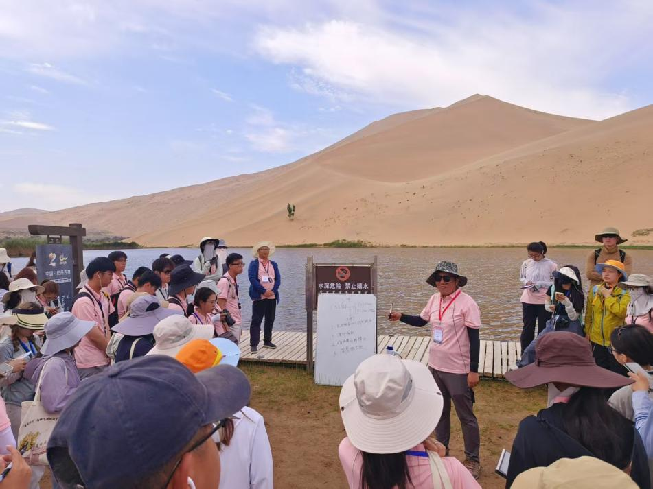 讲解员介绍巴丹吉林沙漠申遗成功一周年