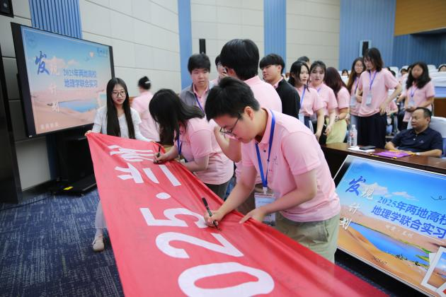 颁奖环节结束后,兰州大学李卓仑教授致闭幕词,表达了对本届联合野外实习成功举办的祝贺,向各位老师和实习工作组成员表达感谢,并对各位同学提出鼓励。最后,各位老师同学在横幅、旗帜上签名留念。本次“发现计划”两地高校地理学联合实习取得了圆满成功。